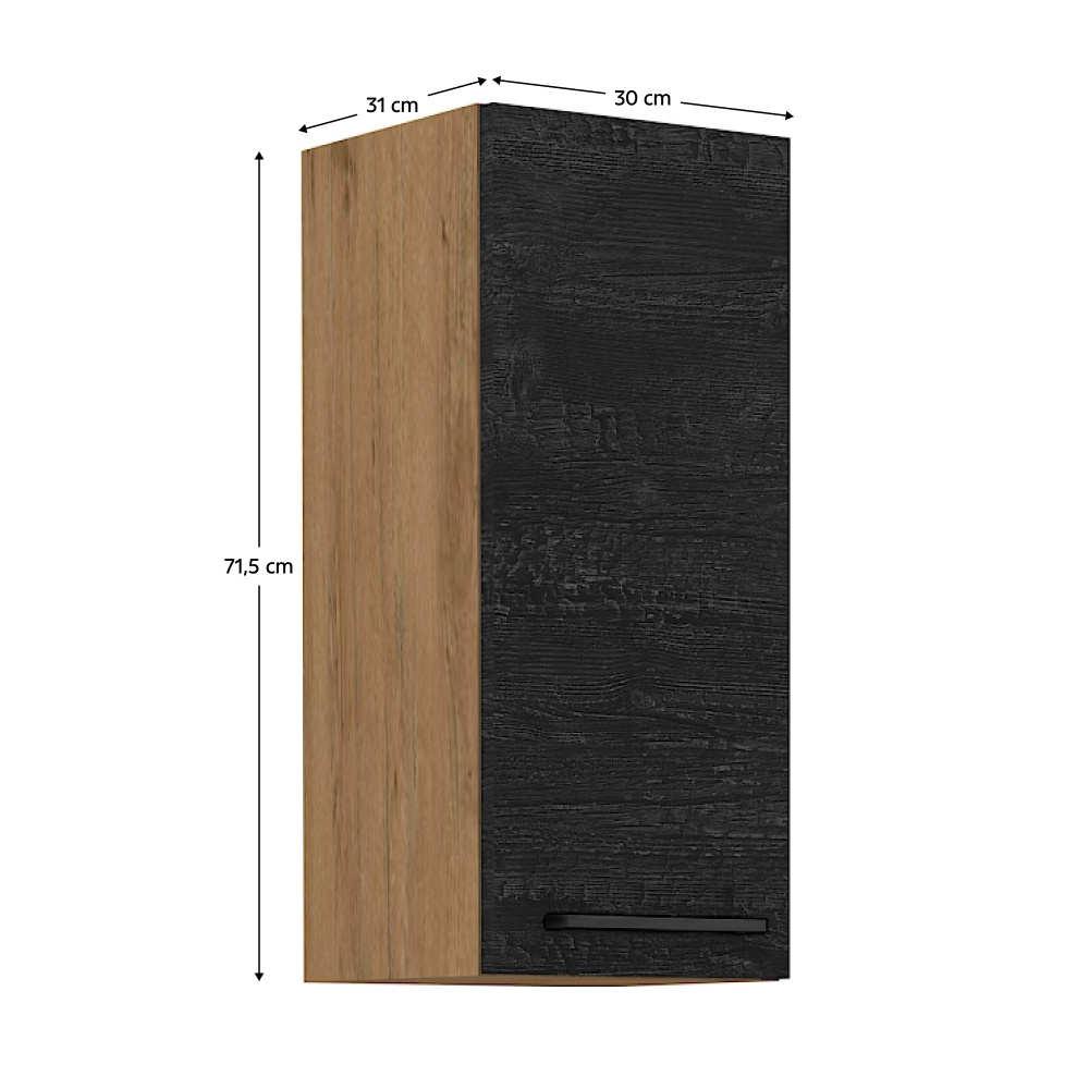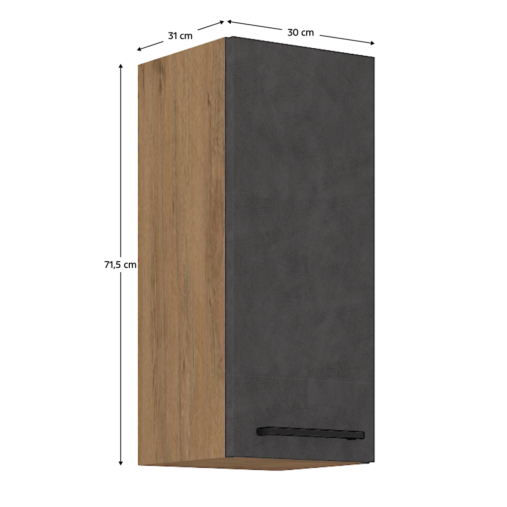 Horní skříňka Vega 30 G-72 1F Materiál: DTD laminovaná Barva: dub lancelot / šedá matná Rozměry (ŠxHxV): 30x31x71,5 cm Skříňka bez pracovní desky Systém tichého zavírání dvířek Včetně spodní lišty Dodávané v demontu Spodní skříňky jsou dodávány včetně dolní lišty, bez pracovní desky. Možnost dokoupit pracovní desku dub lancelot v ceně: 1590 Kč/bm. Možnost dokoupit univerzální L / P dřez LAY ON.