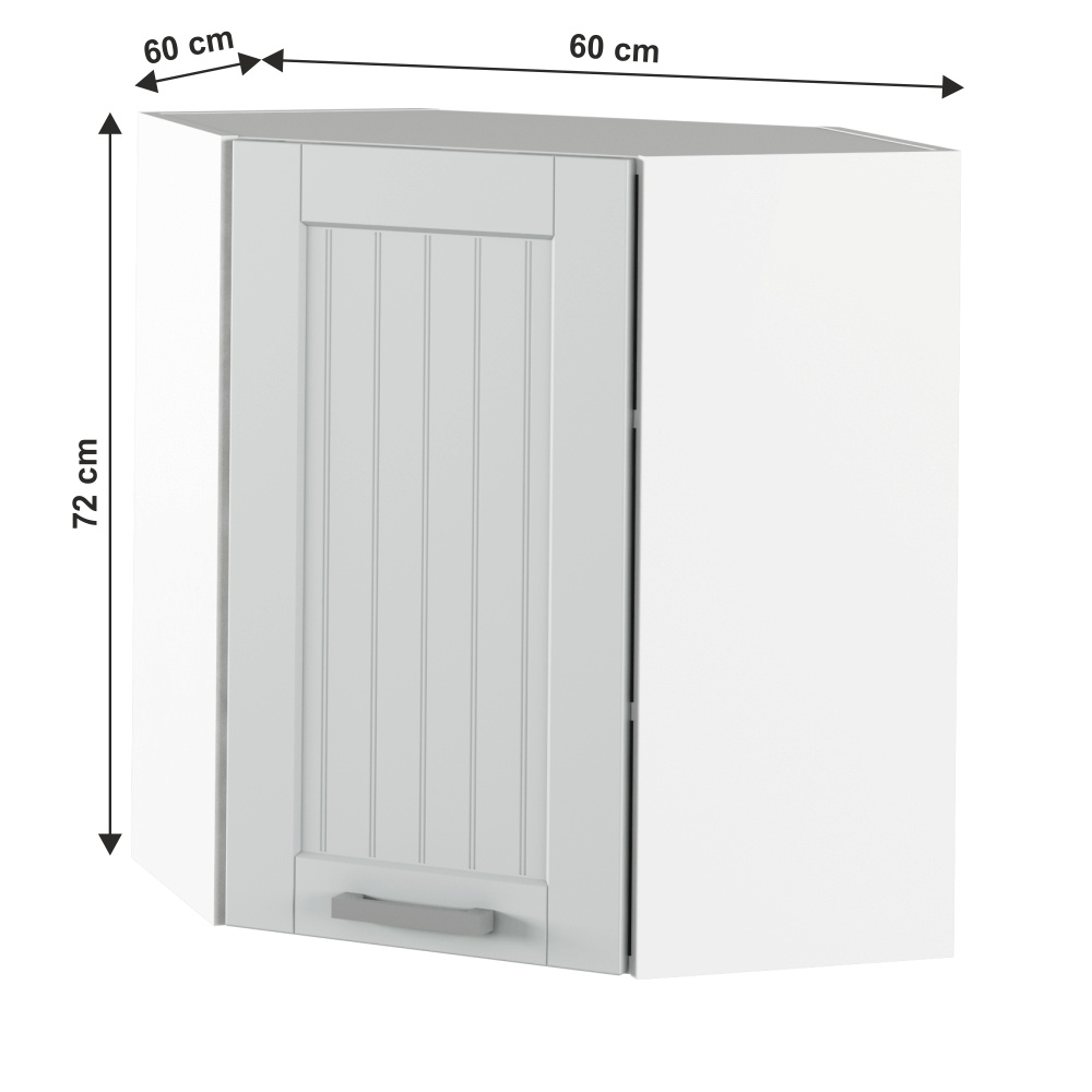Materiál skříňka: DTD laminovaná / MDF fóliovaná Barva skříňka: světlešedá / bílá Materiál úchytky: kov Barva úchytky: matný chrom Rozměry (ŠxHxV): 60x60x72 cm Tloušťka materiálu: 16 mm S dvířky rohová S kovovou úchytkou Univerzální Kvalitní slovenský výrobek Dodávané v demontu Cena sektorových skříněk je včetně soklů, bez pracovní desky. Cena za pracovní desku je 1.390,-Kč za bm - tloušťka 38 mm.