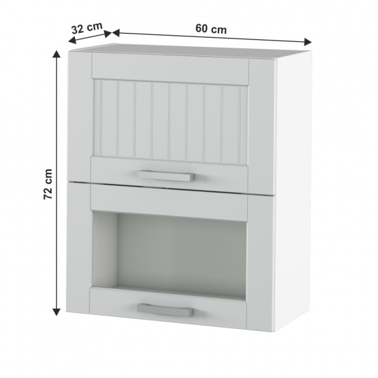 Materiál skříňka: DTD laminovaná / MDF fóliovaná Barva skříňka: světlešedá / bílá Materiál úchytky: kov Barva úchytky: matný chrom Rozměry (ŠxHxV): 60x32x72 cm Tloušťka materiálu: 16 mm S dvířky výklopná dvířka prosklená dvířka policová S kovovými úchyty Kvalitní slovenský výrobek Dodávané v demontu Cena sektorových skříněk je včetně soklů, bez pracovní desky. Cena za pracovní desku je 1.290,-Kč za bm - tloušťka 38 mm.