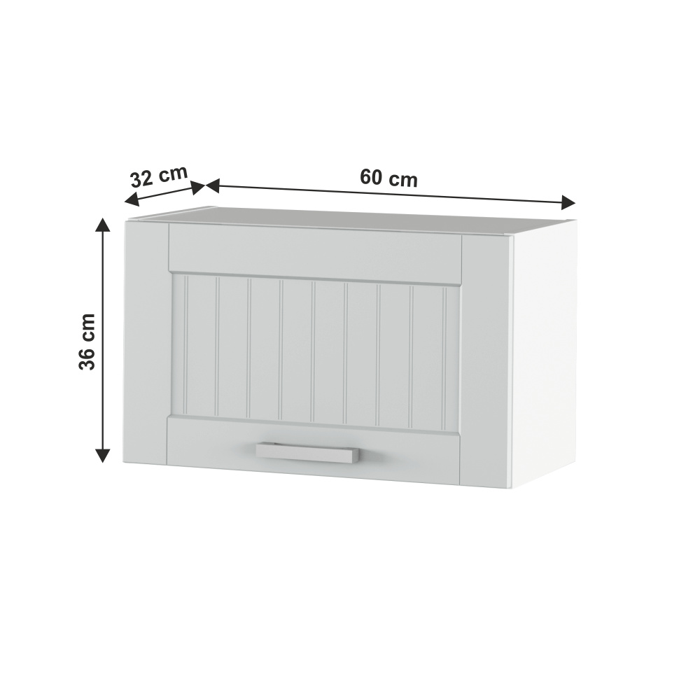 Materiál skříňka: DTD laminovaná / MDF fóliovaná Barva skříňka: světlešedá / bílá Materiál úchytky: kov Barva úchytky: matný chrom Rozměry (ŠxHxV): 60x32x36 cm Tloušťka materiálu: 16 mm S dvířky výklopná dvířka S kovovou úchytkou Kvalitní slovenský výrobek Dodávané v demontu Cena sektorových skříněk je včetně soklů, bez pracovní desky. Cena za pracovní desku je 1.290,-Kč za bm - tloušťka 38 mm.