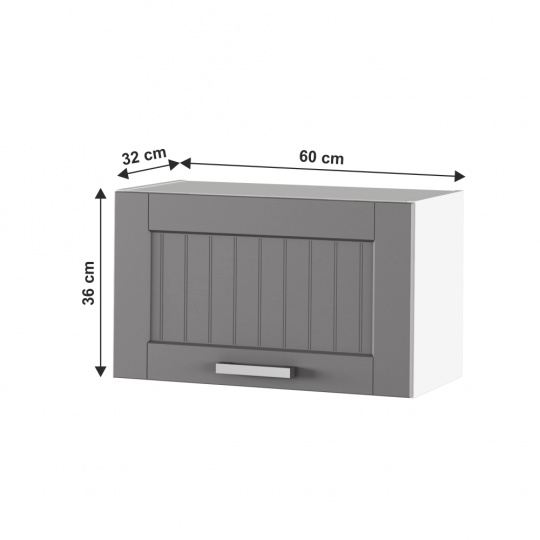 Materiál skříňka: DTD laminovaná / MDF fóliovaná Barva skříňka: tmavě šedá / bílá Materiál úchytky: kov Barva úchytky: matný chrom Rozměry (ŠxHxV): 60x32x36 cm Tloušťka materiálu: 16 mm S dvířky výklopná dvířka S kovovou úchytkou Kvalitní slovenský výrobek Dodávané v demontu Cena sektorových skříněk je včetně soklů, bez pracovní desky. Cena za pracovní desku je 1.290,-Kč za bm - tloušťka 38 mm.