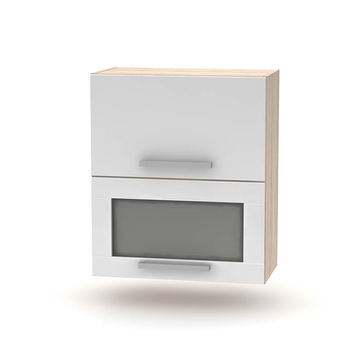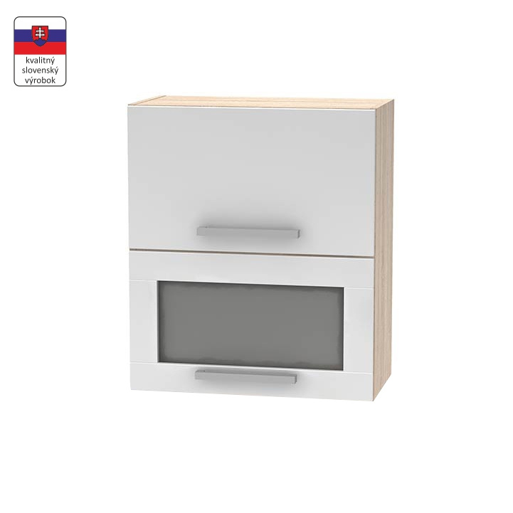 Horní výklopná skříňka se sklem 2DV, dub sonoma / bílá, NOPL-009-OH