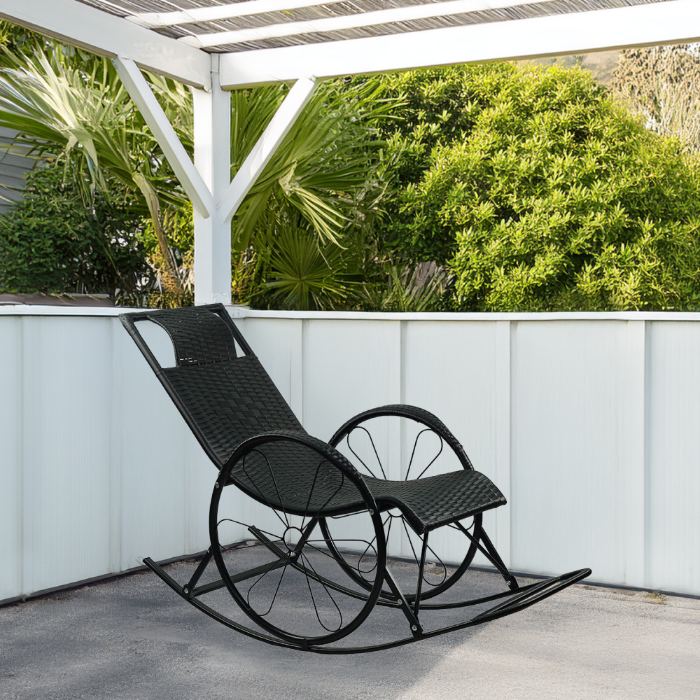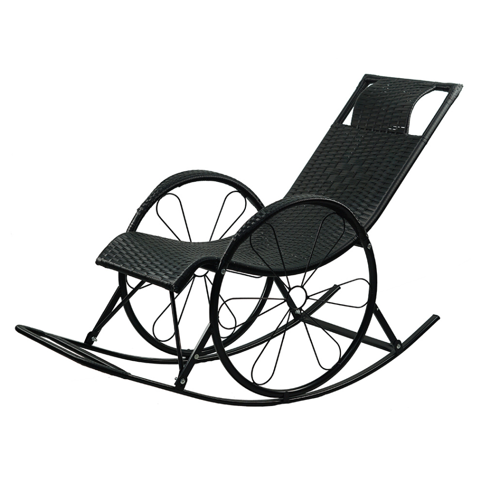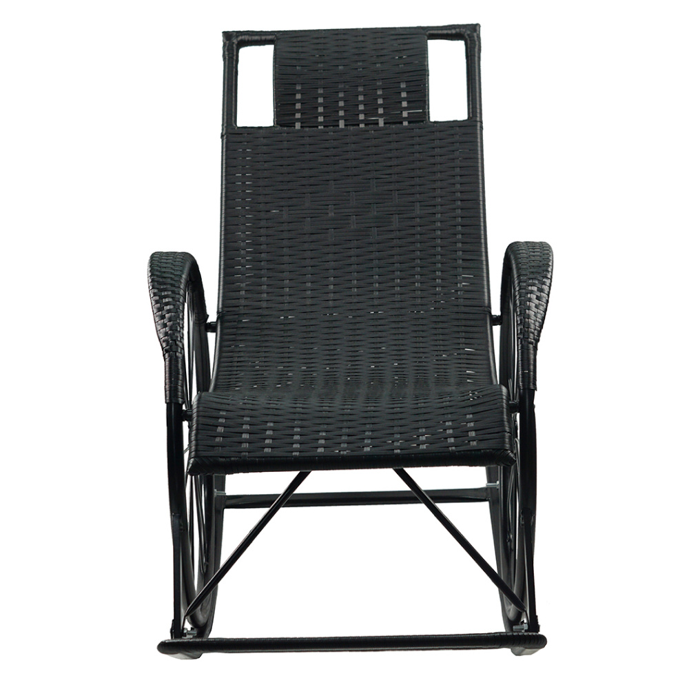 Houpací křeslo, ratan/kov, černá, ROKIN