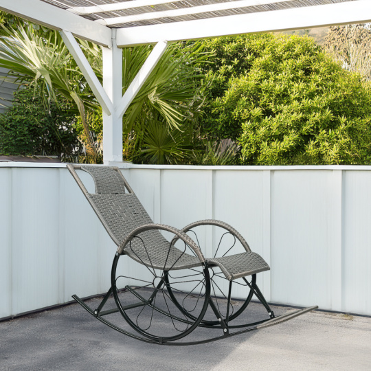 Materiál: technický ratan/kov Barva: šedá Rozměry (ŠxHxV): 51,5x149x90 cm Výška sedu: 37 cm Hloubka sedu: 54 cm Šířka sedu: 44 cm Šířka zádové opěrky: 44 cm Výška zádové opěrky: 67 cm Výška opěrky na ruku od země: 60 cm Nosnost: max. 120 kg Houpací Relaxační Pohodlné Područka ve tvaru kola Vhodné do interiéru a na kryté terasy Doporučujeme výrobek chránit před nepříznivými povětrnostními podmínkami, aby se prodloužila životnost výrobku Dodáváno v demontu