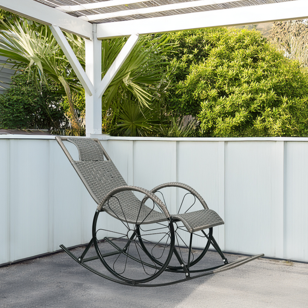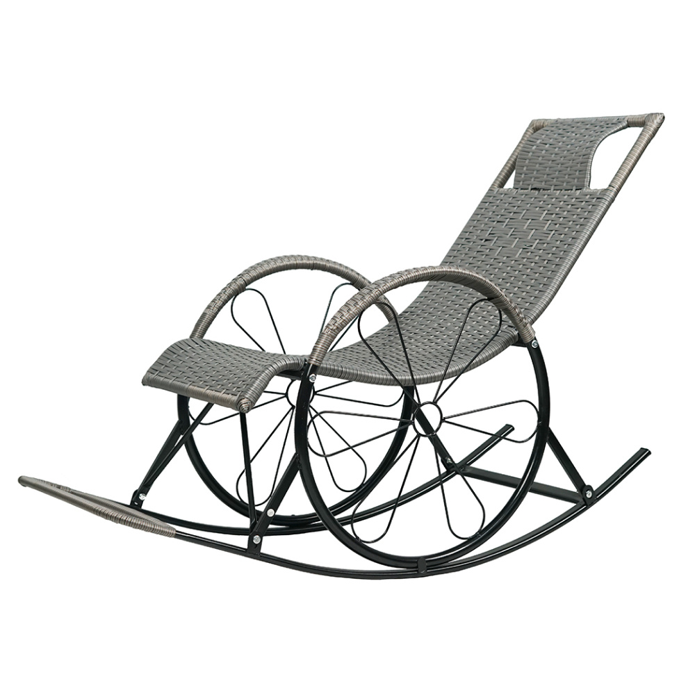 Houpací křeslo, ratan/kov, šedá, ROKIN