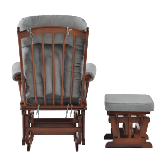 Materiál: látka/masivní kaučukové dřevo Oděruodolnost textilie dle testu Martindale: 65 000 oděrů Barva: ořech/šedá Rozměry křeslo (ŠxHxV): 71x81x104 cm Rozměry podnož (ŠxHxV): 50x39x38 cm Výška sedu: 48 cm Hloubka sedu: 46 cm Šířka sedu: 46 cm Výška zádové opěrky: 65 cm Šířka zádové opěrky: 54 cm Nosnost: 110 kg Houpací mechanismus Relaxační Designové Pohodlné Dodáváno s podnoží Podnož s houpacím mechanismem Dodáváno s polštáři Výplň polštářů: molitán Tloušťka polštáře na zádové opěrce: 10 cm Tloušťka polštáře na sedáku: 8 cm Tloušťka polštáře na podnoži: 4,5 cm Potah není snímatelný Čistit jen vlhkým hadříkem Dodáváno v demontu
