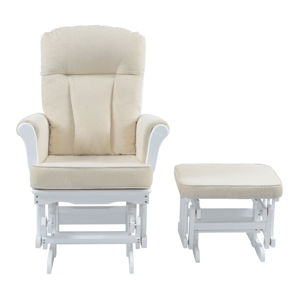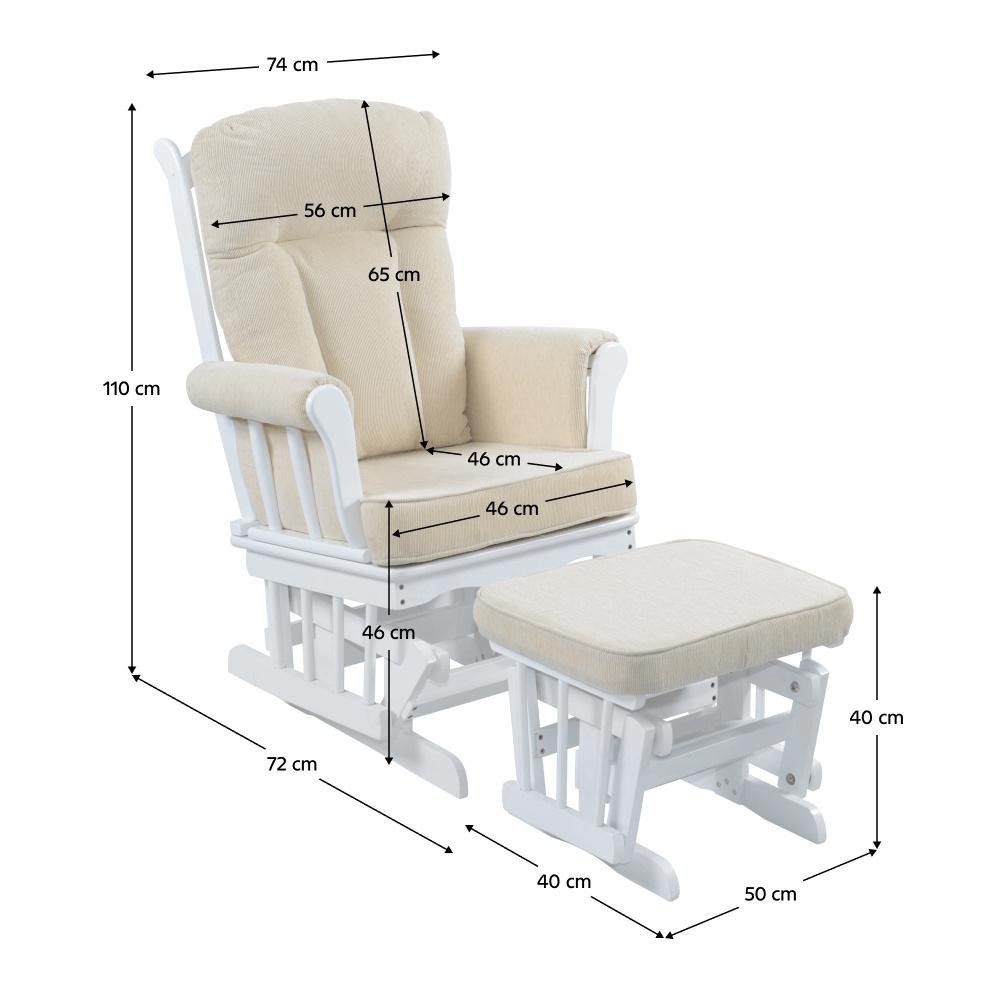 Materiál: látka/masivní kaučukové dřevo Oděruodolnost textilie dle testu Martindale: 65 000 oděrů Barva: bílá/krémová Rozměry křeslo (ŠxHxV): 71x81x104 cm Rozměry podnož (ŠxHxV): 50x39x38 cm Výška sedu: 48 cm Hloubka sedu: 46 cm Šířka sedu: 46 cm Výška zádové opěrky: 65 cm Šířka zádové opěrky: 54 cm Nosnost: 110 kg Houpací mechanismus Relaxační Designové Pohodlné Dodáváno s podnoží Podnož s houpacím mechanismem Dodáváno s polštáři Výplň polštářů: molitán Tloušťka polštáře na zádové opěrce: 10 cm Tloušťka polštáře na sedáku: 8 cm Tloušťka polštáře na podnoži: 4,5 cm Potah není snímatelný Čistit jen vlhkým hadříkem Dodáváno v demontu