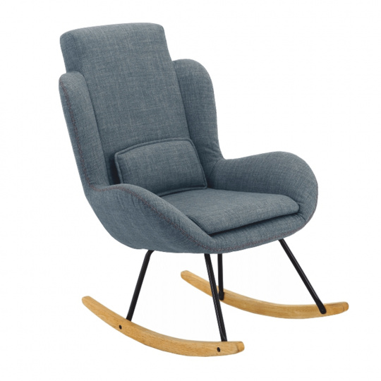 Houpací křeslo, šedá látka / dřevo, HARPER
