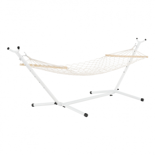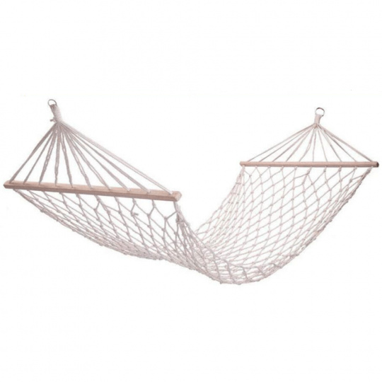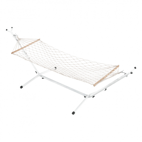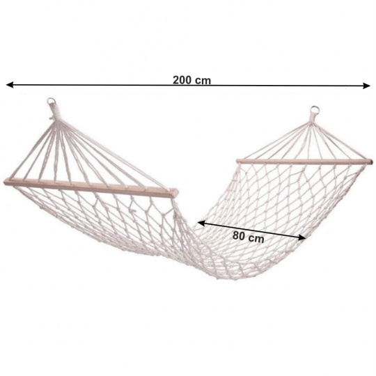 Houpací závěsná síť ATIKA NEW TYP 2 Materiál: 100% bavlna / dřevo Barva: bílá Plocha na ležení (ŠxD): 80x200 cm Celková délka: 240cm Nosnost: 120 kg Stojan není součástí balení, můžete si doobjednat Dodávané v demontu.