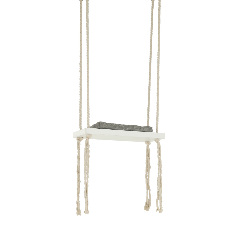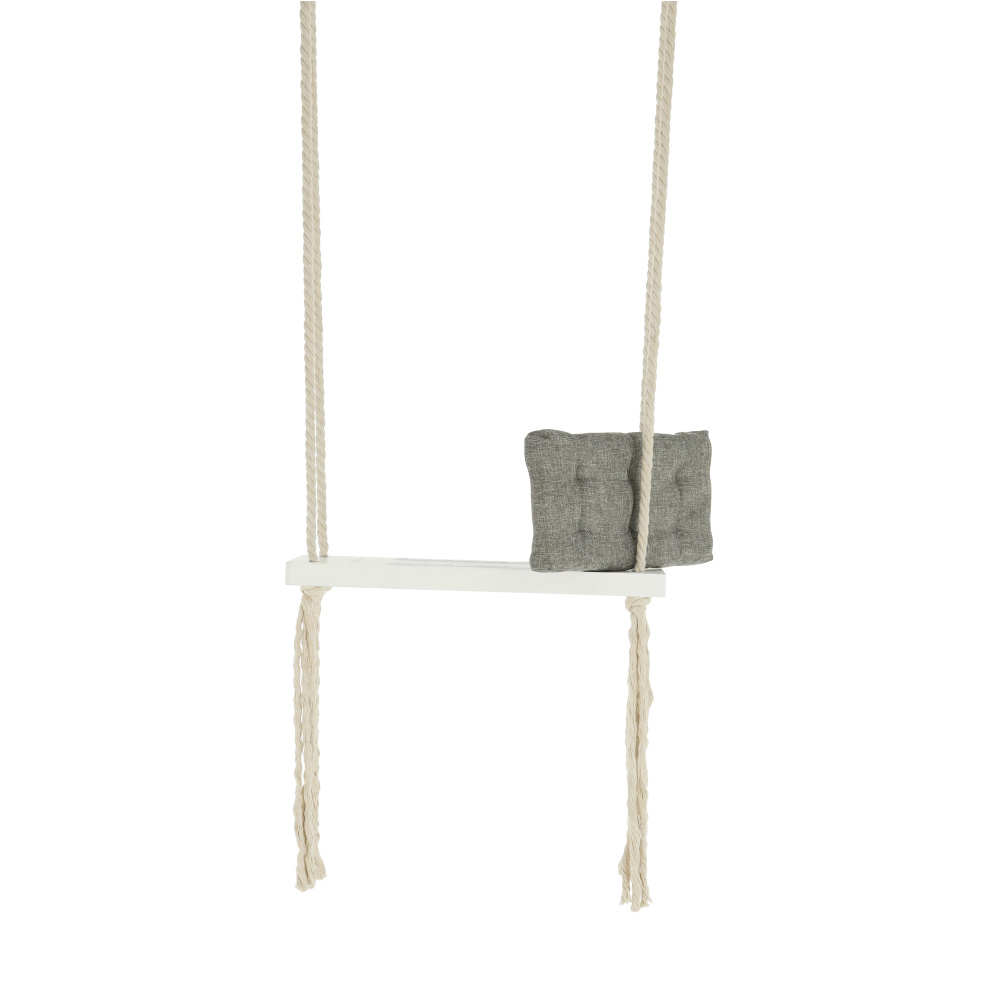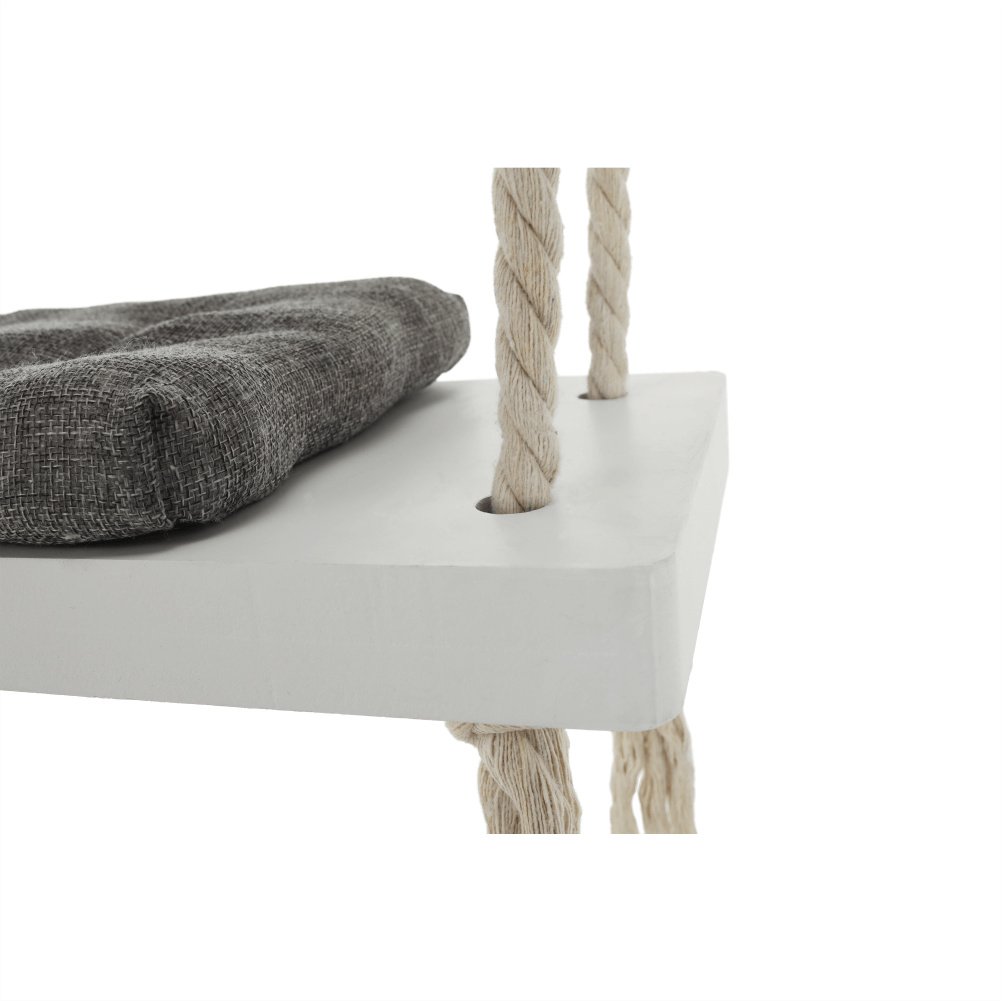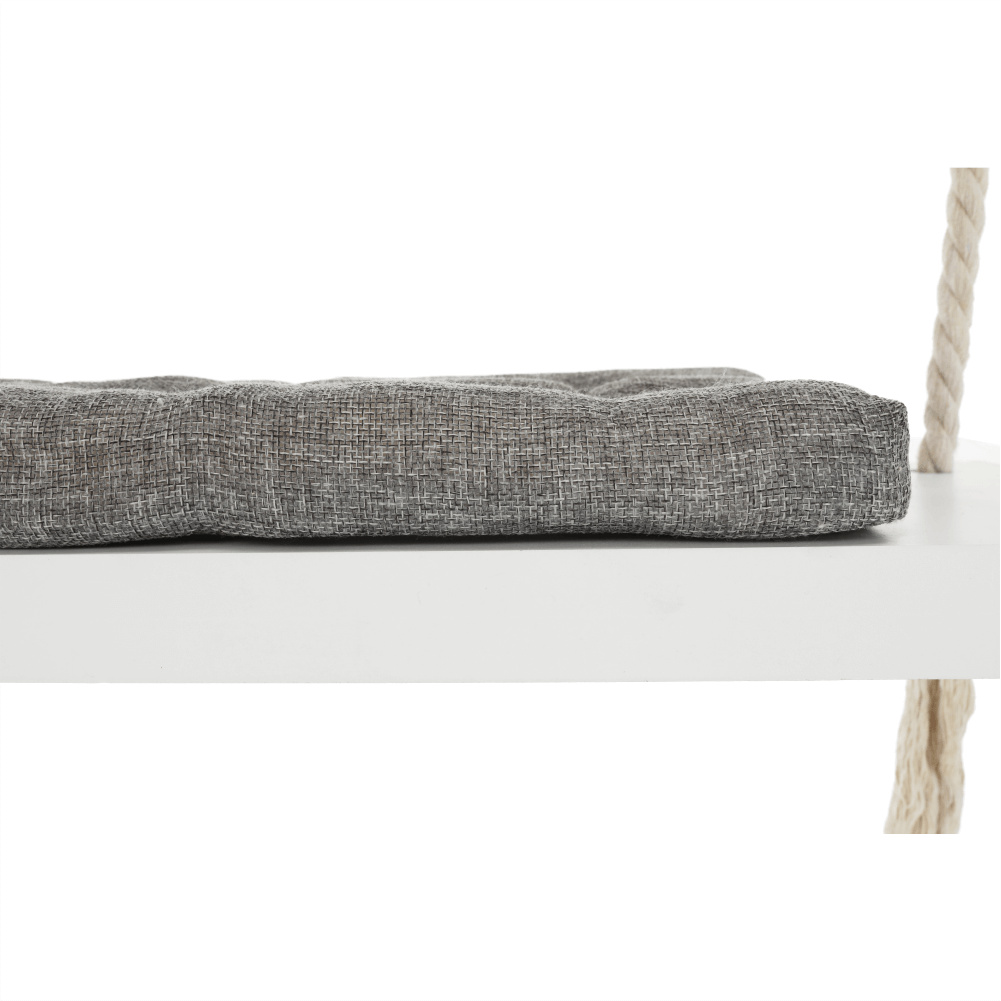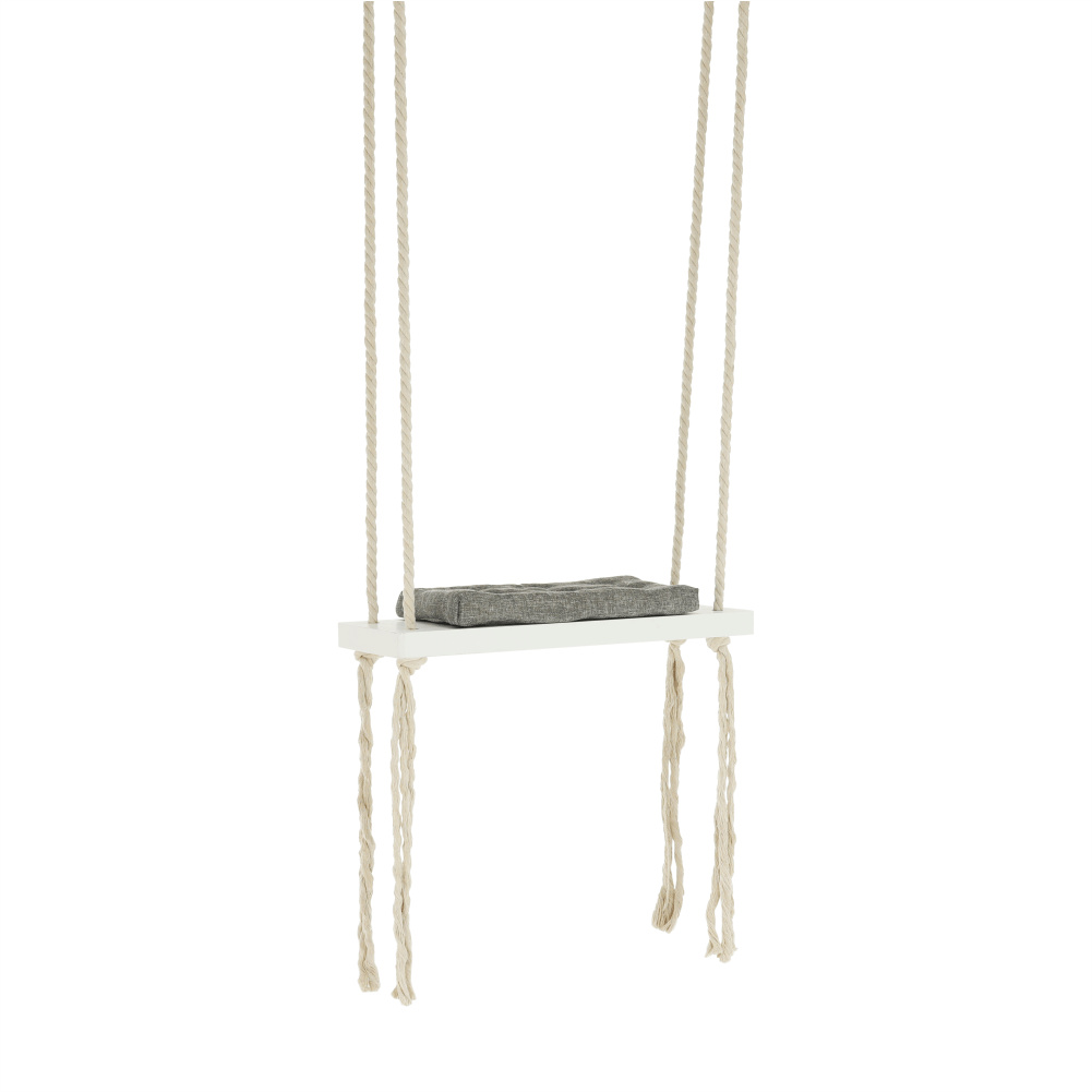 Materiál konstrukce: dřevo / lano Barva: bílá Materiál polštář: látka Barva: šedá Rozměry houpačka (ŠxHxV): 50x18x3 cm Rozměry polštář (ŠxHxV): 34x17x4 cm Polštář se suchým zipem snímatelný Doporučujeme prát ručně při max. 40 ° Nebělit, nečistit chemicky Neždímat, polštář tak může ztratit tvar Nosnost: 60 kg Kování na zavěšení součástí balení Vhodná pro děti od 4 let Pro děti pod dozorem dospělého Vhodná do interiéru Moderní zpracování Dodávané v demontu