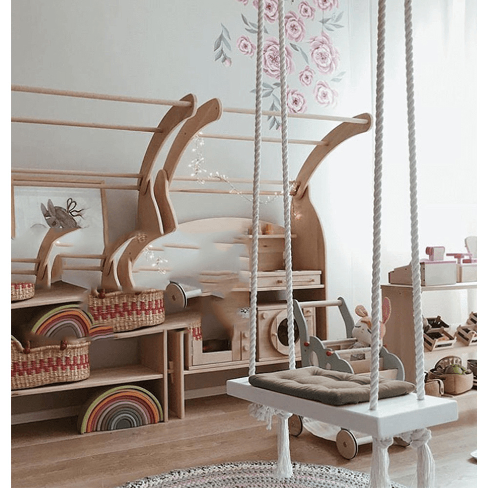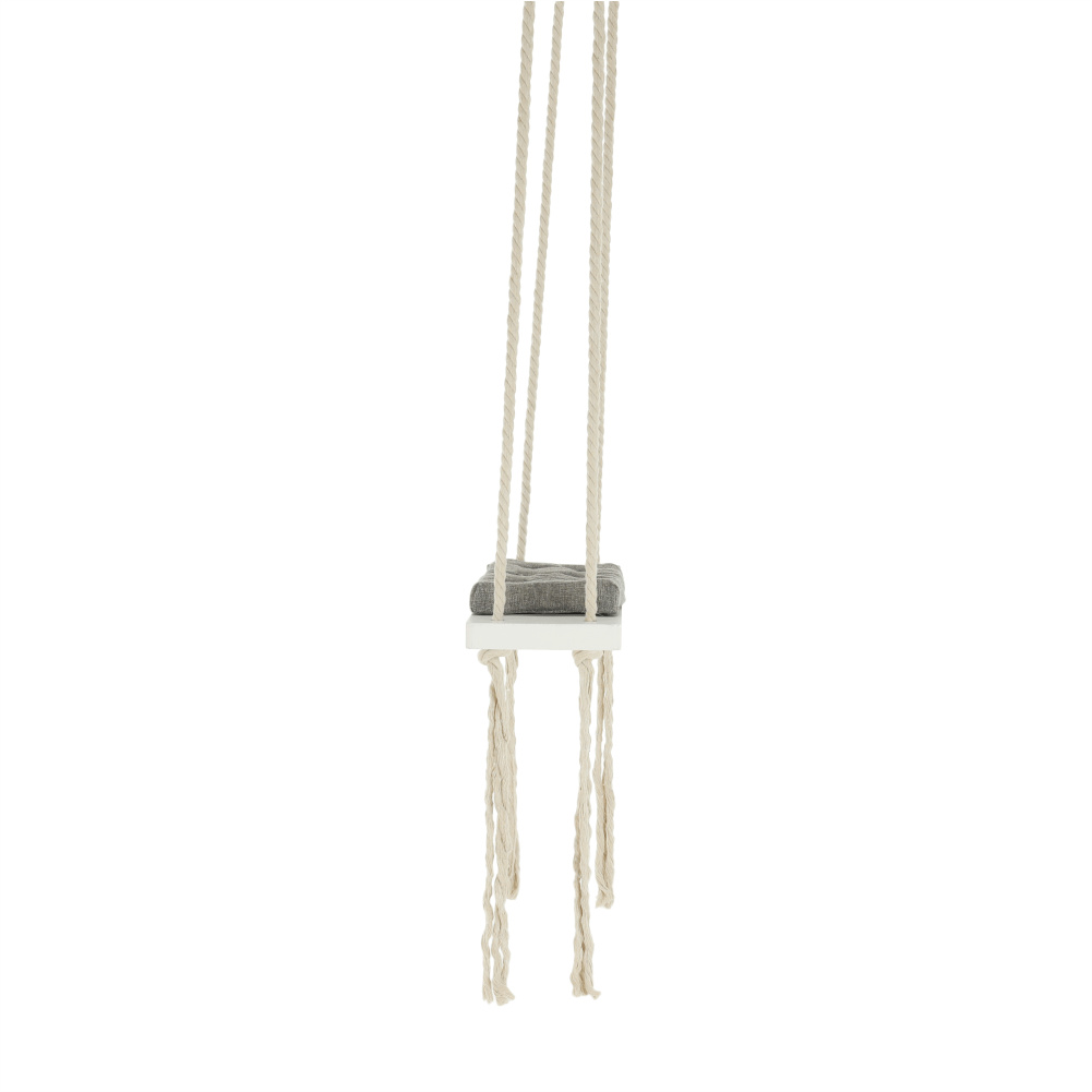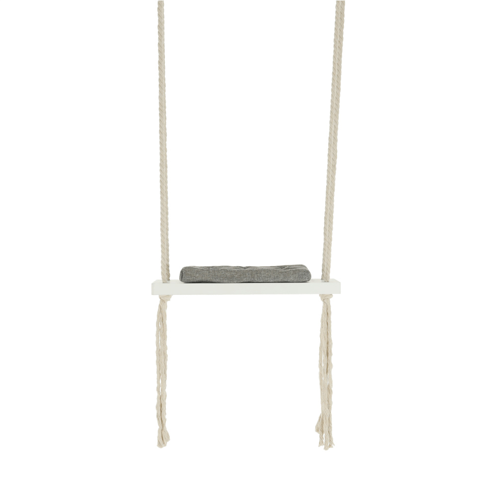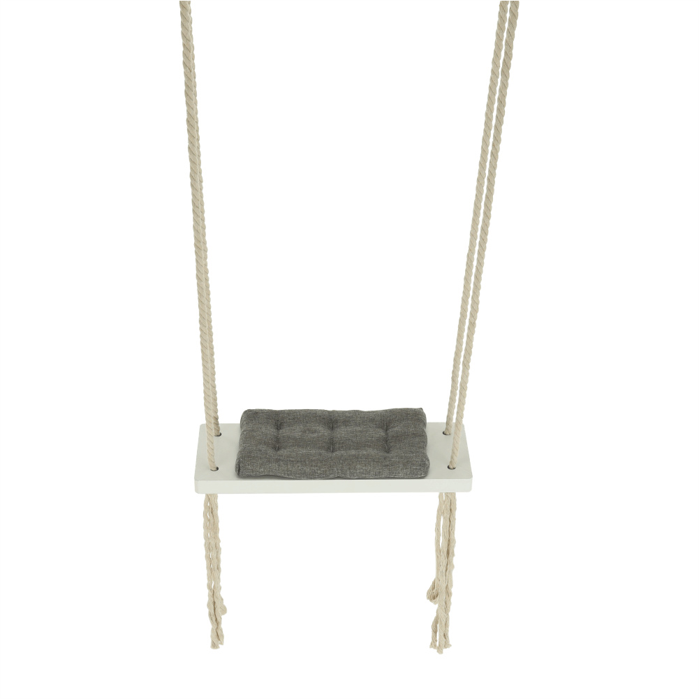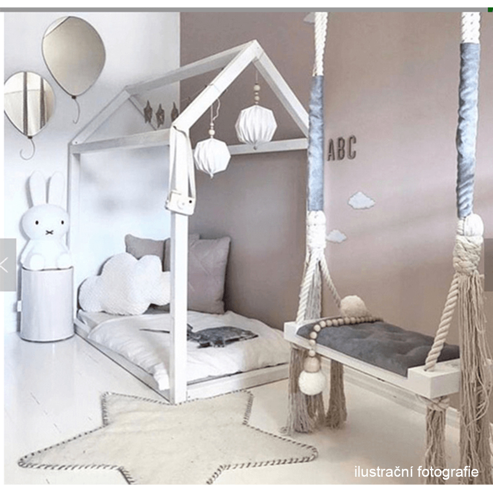 Materiál konstrukce: dřevo / lano Barva: bílá Materiál polštář: látka Barva: šedá Rozměry houpačka (ŠxHxV): 50x18x3 cm Rozměry polštář (ŠxHxV): 34x17x4 cm Polštář se suchým zipem snímatelný Doporučujeme prát ručně při max. 40 ° Nebělit, nečistit chemicky Neždímat, polštář tak může ztratit tvar Nosnost: 60 kg Kování na zavěšení součástí balení Vhodná pro děti od 4 let Pro děti pod dozorem dospělého Vhodná do interiéru Moderní zpracování Dodávané v demontu