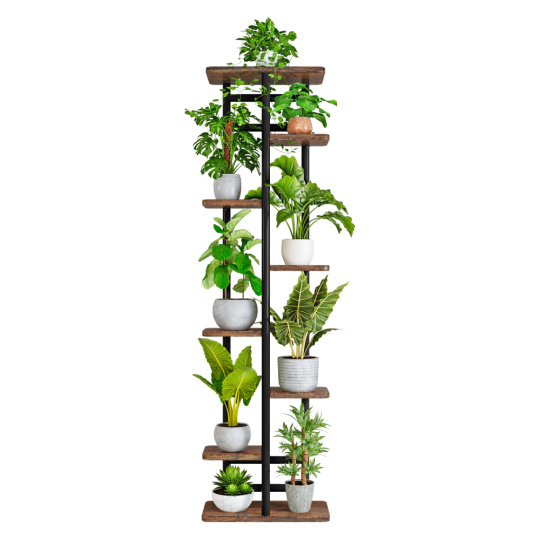 Kovový stojan na květiny, černá/rustikální dřevo, LEDOR TYP 4