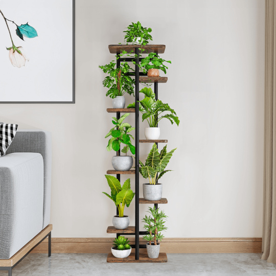 Materiál: kov/DTD Barva: černá/rustikální dřevo Rozměry (ŠxHxV): 36x23x136 cm Šířka vrchní police: 30 cm Výška mezi 1 a 2 policí z levé strany: 27 cm Výška mezi 2 a 3 policí z levé strany: 32 cm Výška mezi 3 a 4 policí z levé strany: 32 cm Výška mezi 4 a 5 policí z levé strany: 43 cm Výška mezi 1 a 2 policí z pravé strany: 43 cm Výška mezi 2 a 3 policí z pravé strany: 32 cm Výška mezi 3 a 4 policí z pravé strany: 32 cm Výška mezi 4 a 5 policí z pravé strany: 27 cm Tloušťka tyče: 1,6 cm Nosnost na polici: 2 kg Doporučujeme rovnoměrné zatížení polic Jako stojan na hrnkové rostliny Praktický Víceúčelový Moderní design Dodáván v demontu