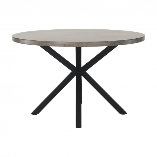 Jedálenský stůl MEDOR Ukradený materiál: MDF Farba: beton Konstrukce nohy: kov Farba: čierna Rozmery PxV: 120x76 cm Tloušťka vrchního plátu: 4 cm Okrúhly Průmyslová ocel Dodávané v demonte