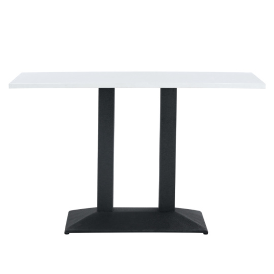 Materiál: DTD laminovaná/kov Barva: bílá/černá Rozměry (ŠxHxV): 120x60x75 cm Hmotnost: 21 kg Tloušťka materiálu: 2,3 cm Nosnost: 60 kg Kovová podstava Moderní design Stůl typu: bistro Dodáváno v demontu