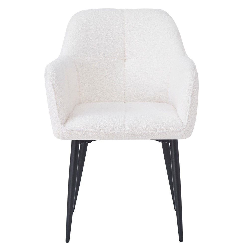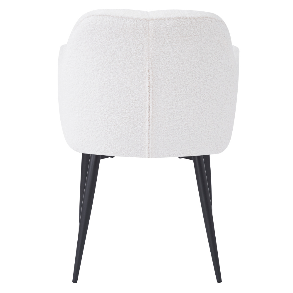 Materiál: látka Bouclé/kov Oděruodolnost textilie podle testu Martindale: 45 000 oděrů Barva: bílá/černá Rozměry (ŠxHxV): 57x61x84 cm Výška sedu: 44 cm Hloubka sedu: 45 cm Šířka sedu: 44 cm Šířka zádové opěrky: 44 cm Výška zádové opěrky: 40 cm Opěrky na ruce Dekorativně prošívané Designové Nosnost: 90 kg Dodáváno v demontu