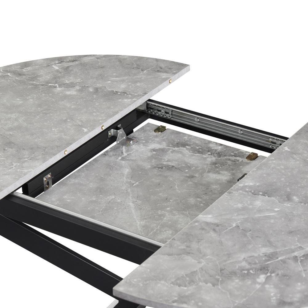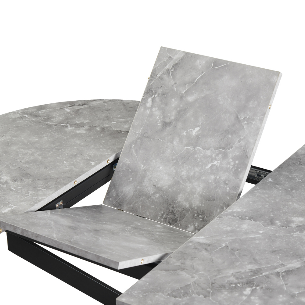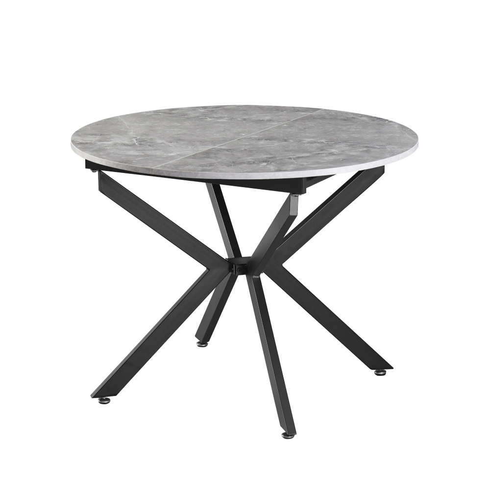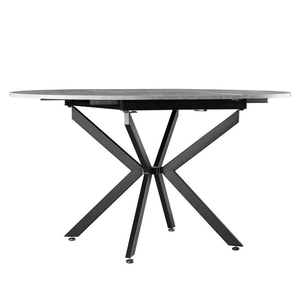 Materiál deska stolu: MDF Barva: beton Konstrukce nohy: kov Barva: černá Rozměry (ŠxHxV): 100x100-140x75 cm Tloušťka materiálu vrchní desky: 1,8 cm Kulatý Praktický Vhodný pro 4-6 osob Nosnost: 25 kg Dodáváno v demontu