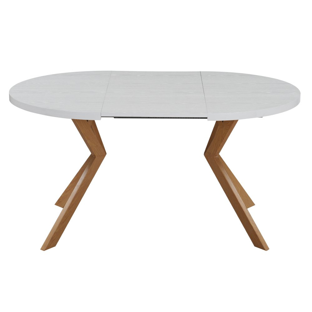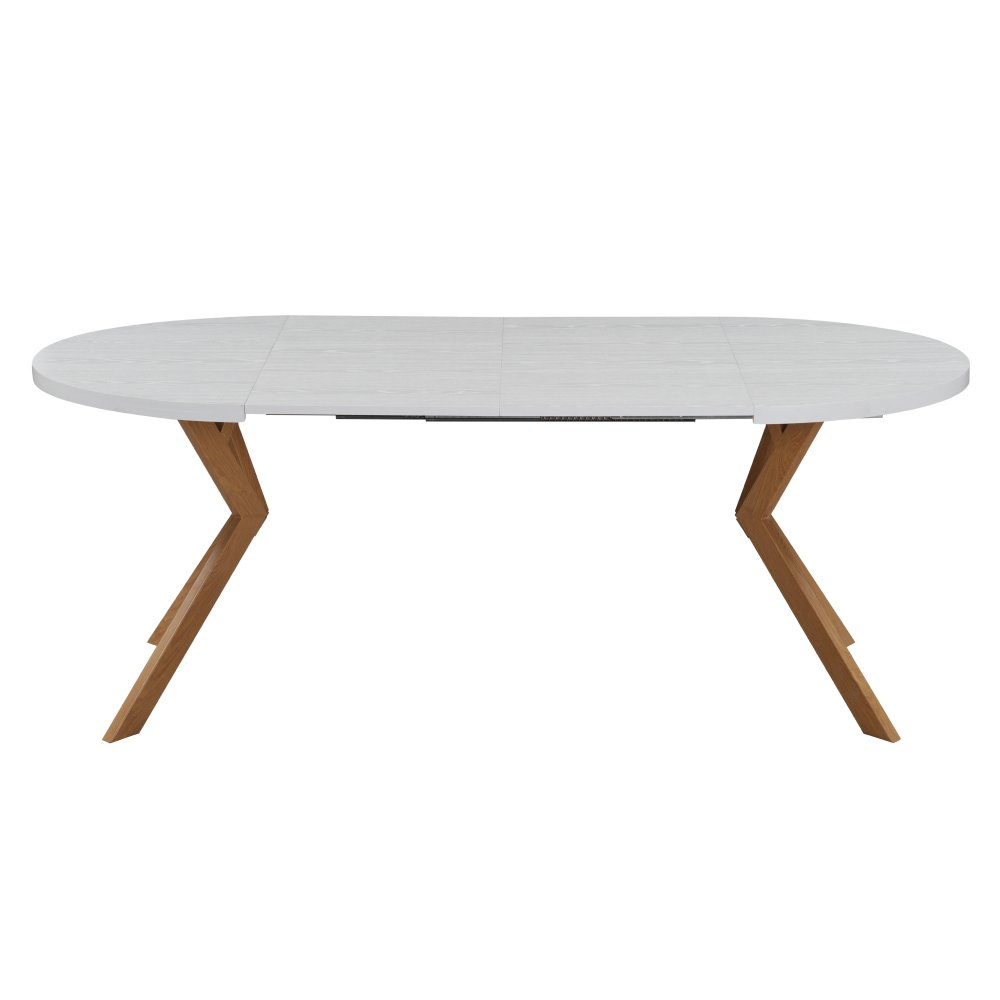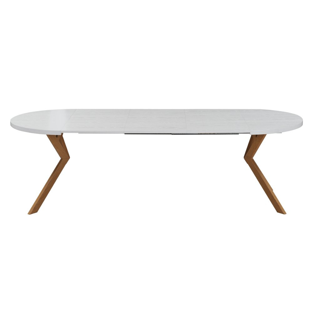Jídelní rozkládací stůl, bílá/dub, 100-250x75,5 cm, LUKOS