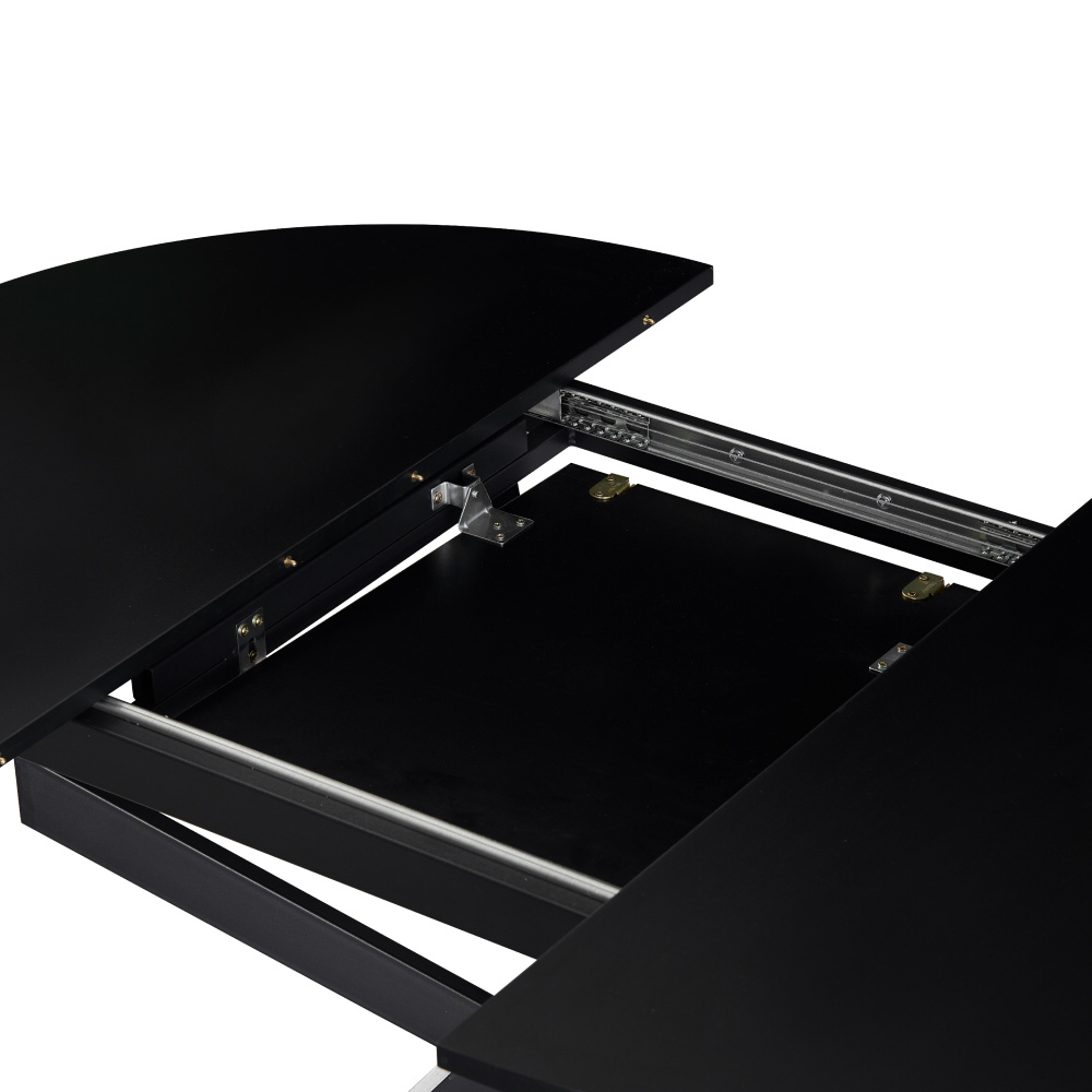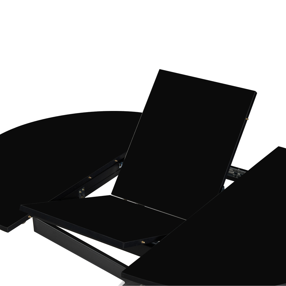 Materiál deska stolu: MDF Barva: černá Konstrukce nohy: kov Barva: černá Rozměry (ŠxHxV): 100x100-140x75 cm Tloušťka materiálu vrchní desky: 1,8 cm Kulatý Praktický Vhodný pro 4-6 osob Nosnost: 25 kg Dodáváno v demontu