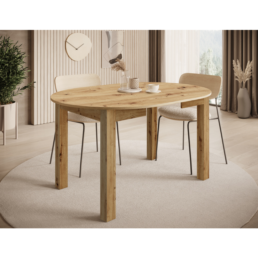 Materiál: DTD laminovaná/ABS hrany Barva: dub artisan Rozměry (ŠxHxV): 103-142x102x76 cm Tloušťka materiálu: 1,6-1,8 cm Praktický Rozkládací Vhodný pro 4-6 osob Nosnost stolu: 20 kg Nosnost stolu s rozkladem: 25 kg Stůl je třeba rovnoměrně zatěžovat Dodáváno v demontu