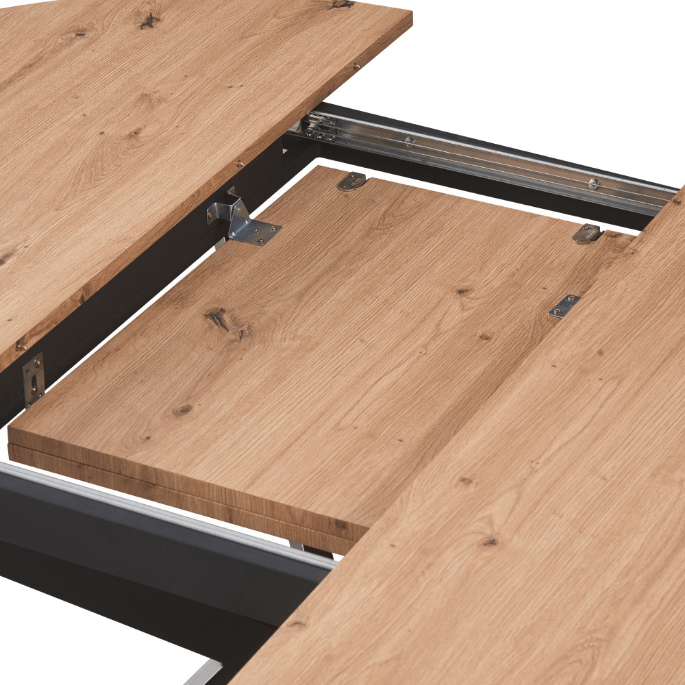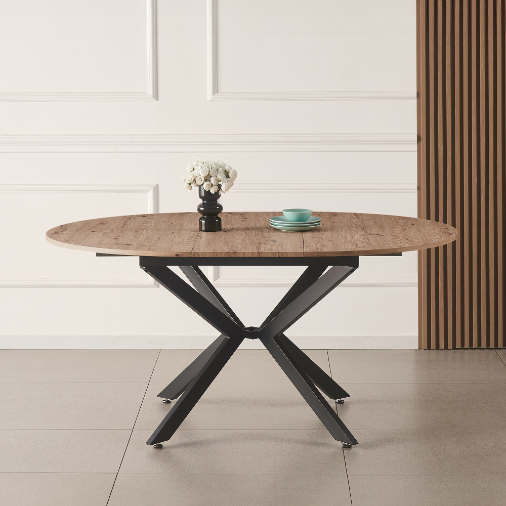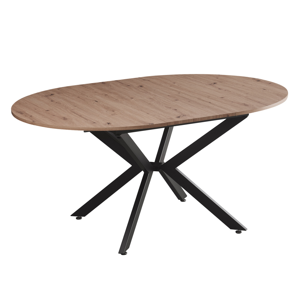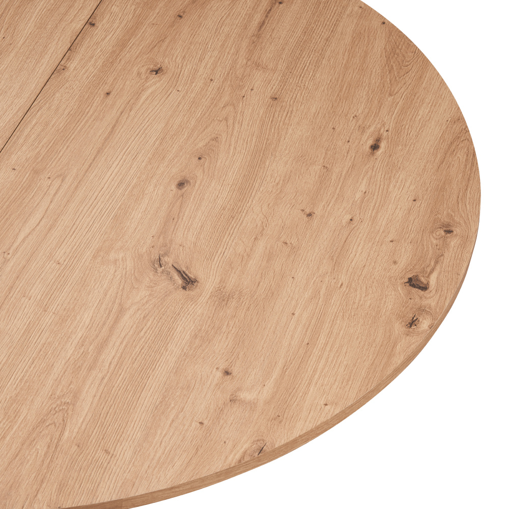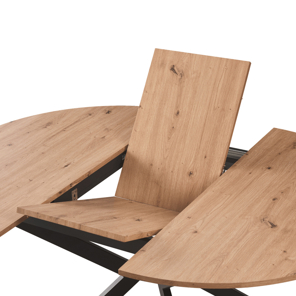 Materiál deska stolu: MDF Barva: dub artisan Konstrukce nohy: kov Barva: černá Rozměry (ŠxHxV): 100x100-140x75 cm Tloušťka materiálu vrchní desky: 1,8 cm Kulatý Praktický Vhodný pro 4-6 osob Nosnost: 25 kg Dodáváno v demontu