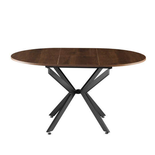 Materiál deska stolu: MDF Barva: dub tmavý Konstrukce nohy: kov Barva: černá Rozměry (ŠxHxV): 100x100-140x75 cm Tloušťka materiálu vrchní desky: 1,8 cm Kulatý Praktický Vhodný pro 4-6 osob Nosnost: 25 kg Dodáváno v demontu