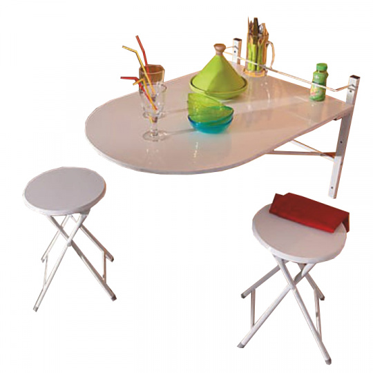 Praktický jídelní set skvělý do menších prostor. Obsahuje jeden stůl a dvě židle - taburety. Materiál: MDF + kov, provedení: bílá, rozměry ŠxHxV: stůl: 60x80x75 cm, židle: 30x30x50 cm. Nosnost židle: 80 kg Nosnost stolu: 15 kg Tloušťka materiálu: 15 mm Vhodný pouze do interiéru Možnost dokoupení samostatné židle v ceně 260,- Kč.