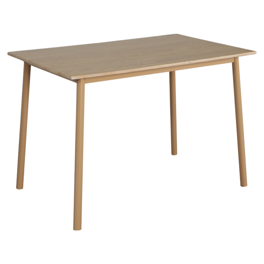 Materiál: MDF/kov Barva: dub přírodní Rozměry stůl (ŠxHxV): 110x70x76 cm Rozměry židle (ŠxHxV): 45x45,5x85,5 cm Výška sedu: 45 cm Hloubka sedu: 45,5 cm Tloušťka MDF: 1,5 cm Nosnost stůl: 20 kg Nosnost židle: 90 kg Jídelní set 1 stůl 4 židle Pro 4 osoby Dodáváno v demontu