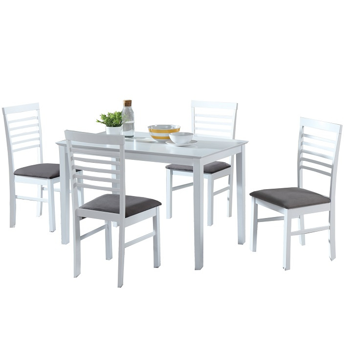Jídelní set, MDF bílá / látka šedá, BRISBO 1 + 4