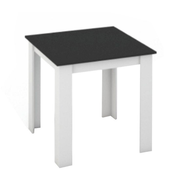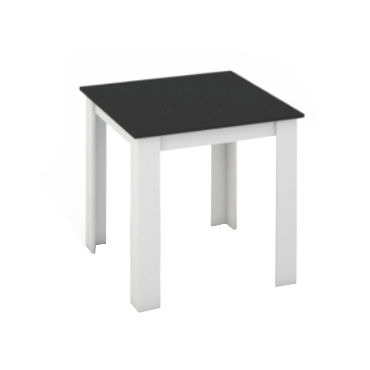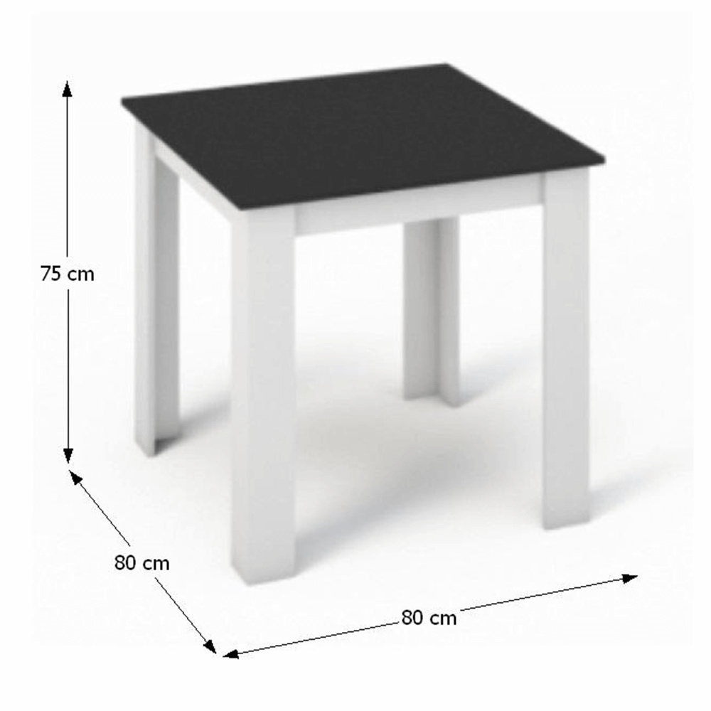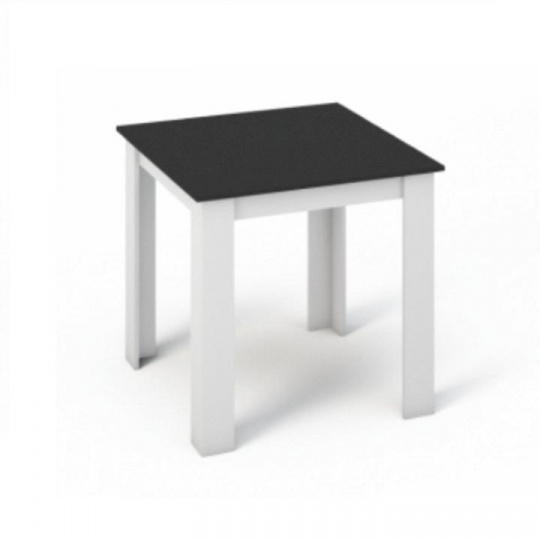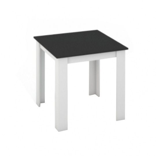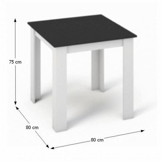 Jídelní stůl KRAZ Materiál: DTD laminovaná / ABS hrany Provedení: černá / bílá Rozměry (ŠxHxV): 80x80x75 cm Tloušťka materiálu: 16 mm Vhodný pro 4 osoby Dodávané v demontu