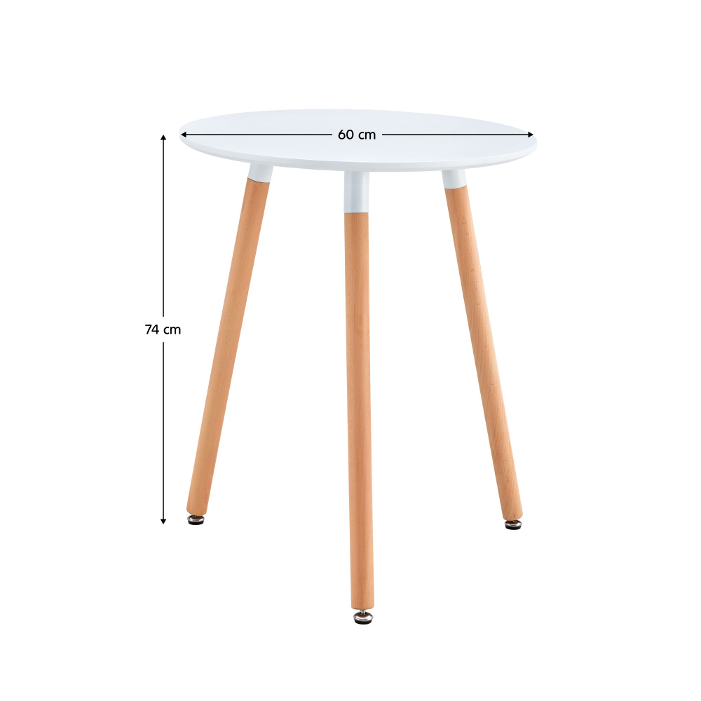 Materiál plát stolu: MDF Barva: bílá matná Materiál nohy: dřevo Barva: buk Rozměry (průměr x V): 60x74 cm Praktický Moderní design Vhodné kombinovat s židlemi BALI, DAMEN, ZOSIMA Dodáváno v demontu