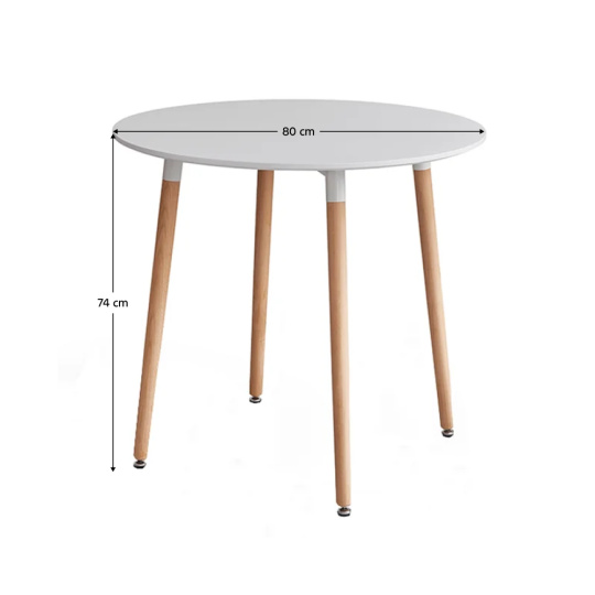 Jídelní stůl ELCAN NEW TYP 2 Materiál: MDF / dřevo Barva: bílá / buk Rozměry (průměr x V): 80x74 cm moderní design Vhodné kombinovat s židlemi BALI, ZOSIMA Dodávané v demontu.