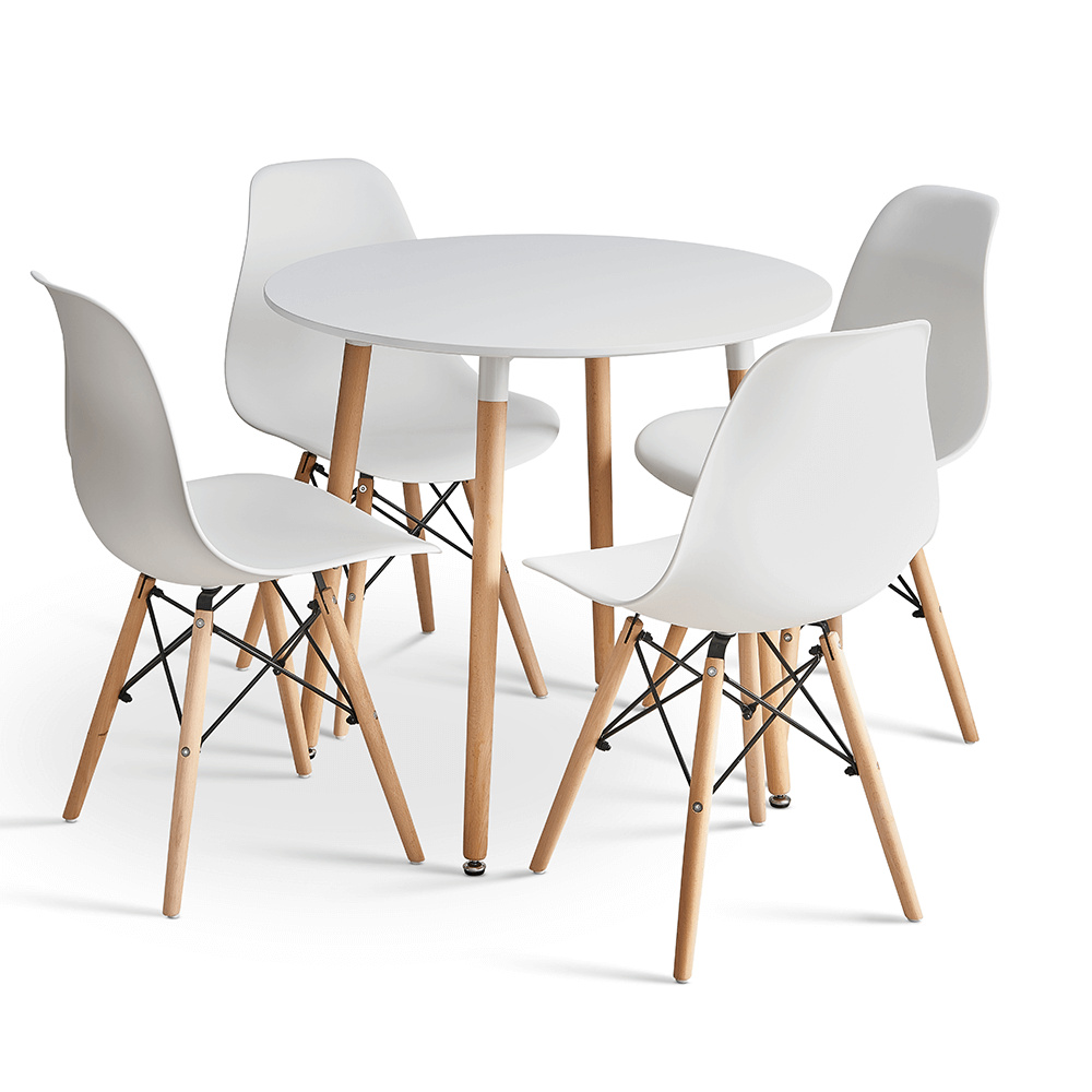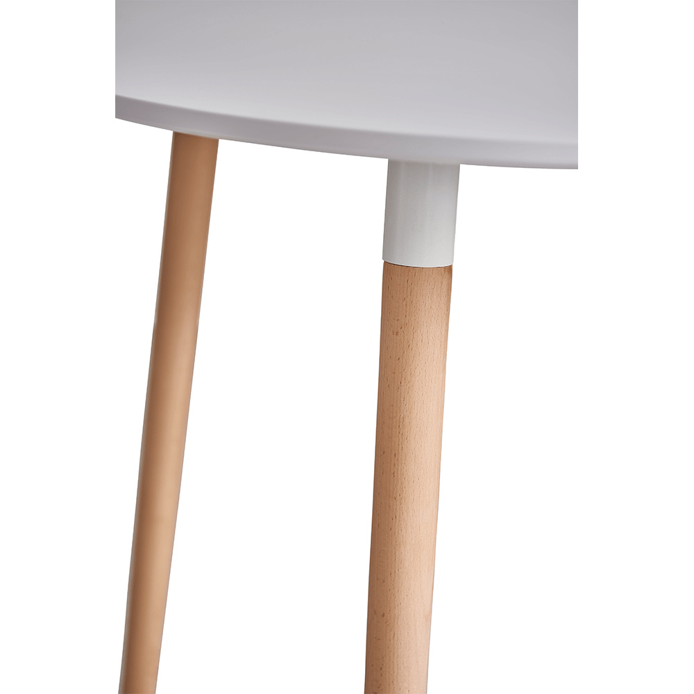 Jídelní stůl ELCAN NEW TYP 2 Materiál: MDF / dřevo Barva: bílá / buk Rozměry (průměr x V): 80x74 cm moderní design Vhodné kombinovat s židlemi BALI, ZOSIMA Dodávané v demontu.