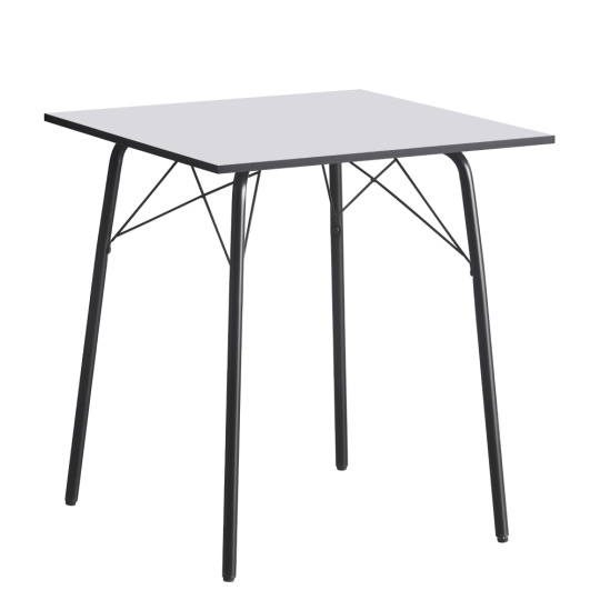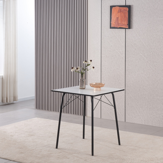 Materiál: MDF/kov Barva: bílá/černá Rozměry (ŠxHxV): 70x70x75 cm Tloušťka materiálu vrchní desky: 1,5 cm Nosnost: 25 kg Jednoduchý Minimalistický Klasické provedení Kovové nohy Jednoduchá údržba S kluzáky pro ochranu podlahy Stolování pro 4 lidi Dodáváno v demontu
