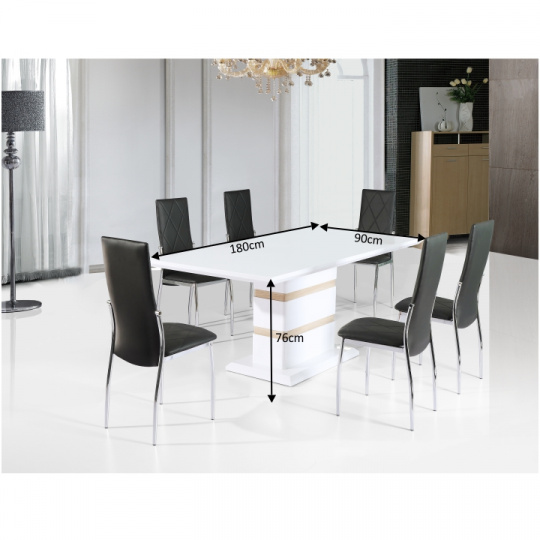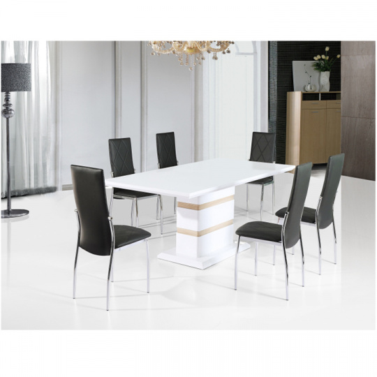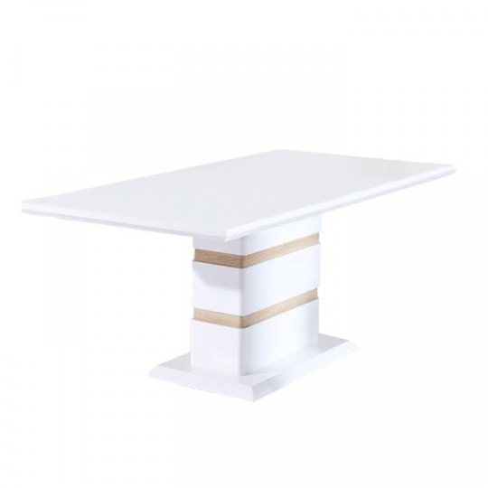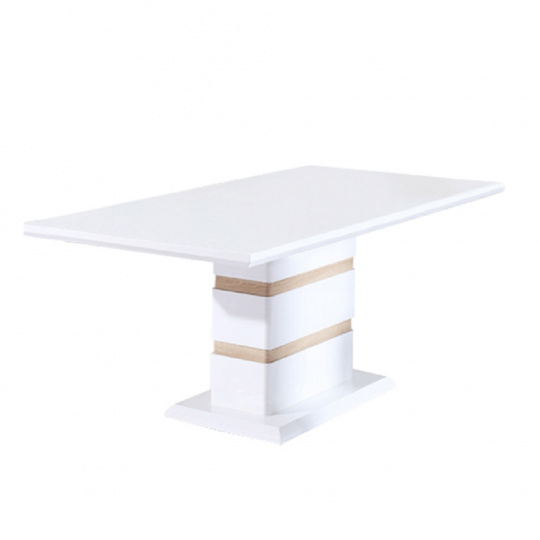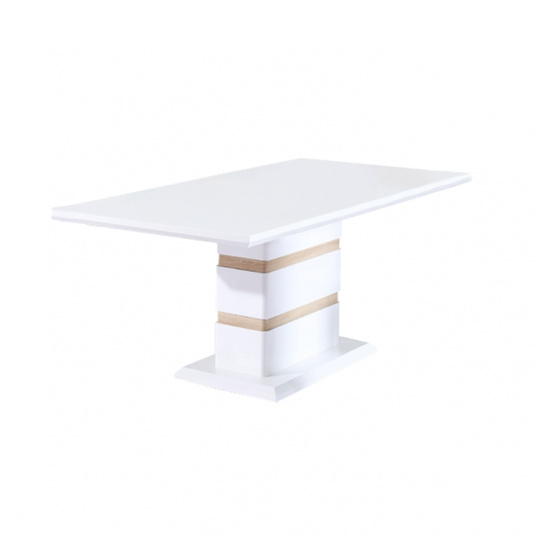 Jídelní stůl KROS barevné provedení: bílá / bílá extra vysoký lesk HG Materiál: MDF / kov Rozměry (ŠxHxV): 160-220x90x76 cm Tloušťka materiálu: 40 mm Dodáván v demontu. Hmotnost: 78kg