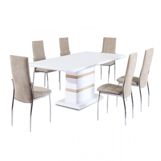 Jídelní set, MDF bílá / látka šedá, BRISBO 1 + 4