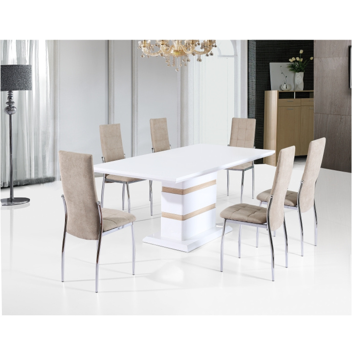 Jídelní stůl, bílá / bílá extra vysoký lesk HG, 160-220x90 cm, KROS