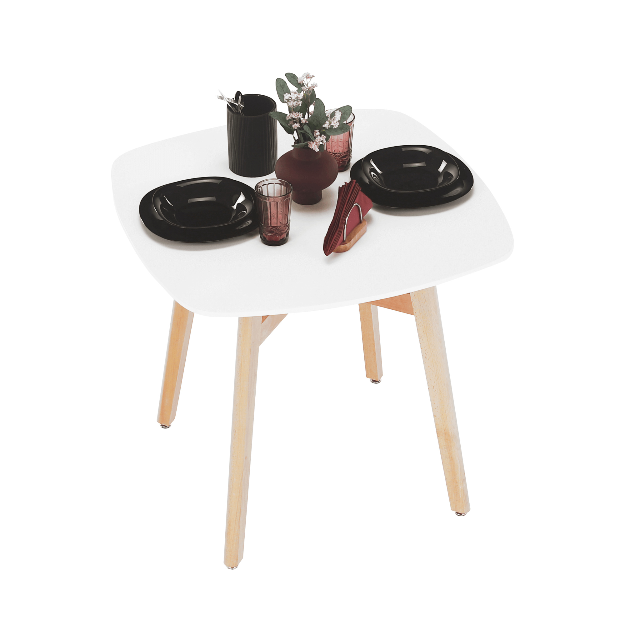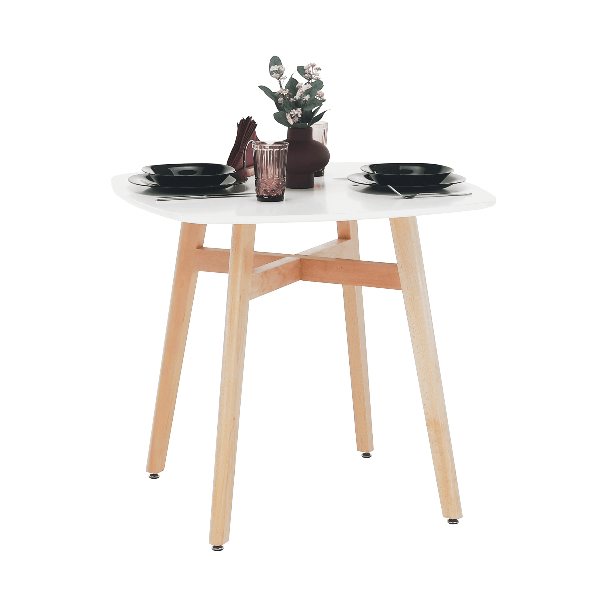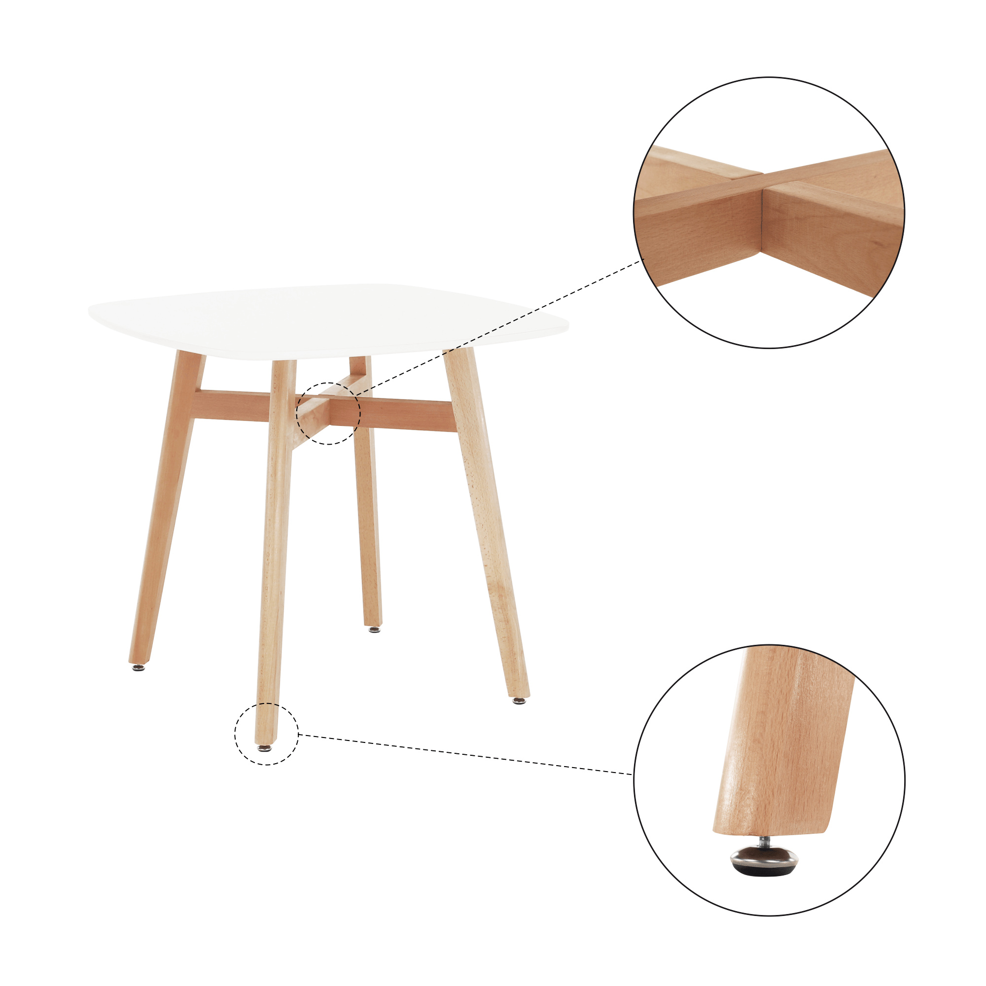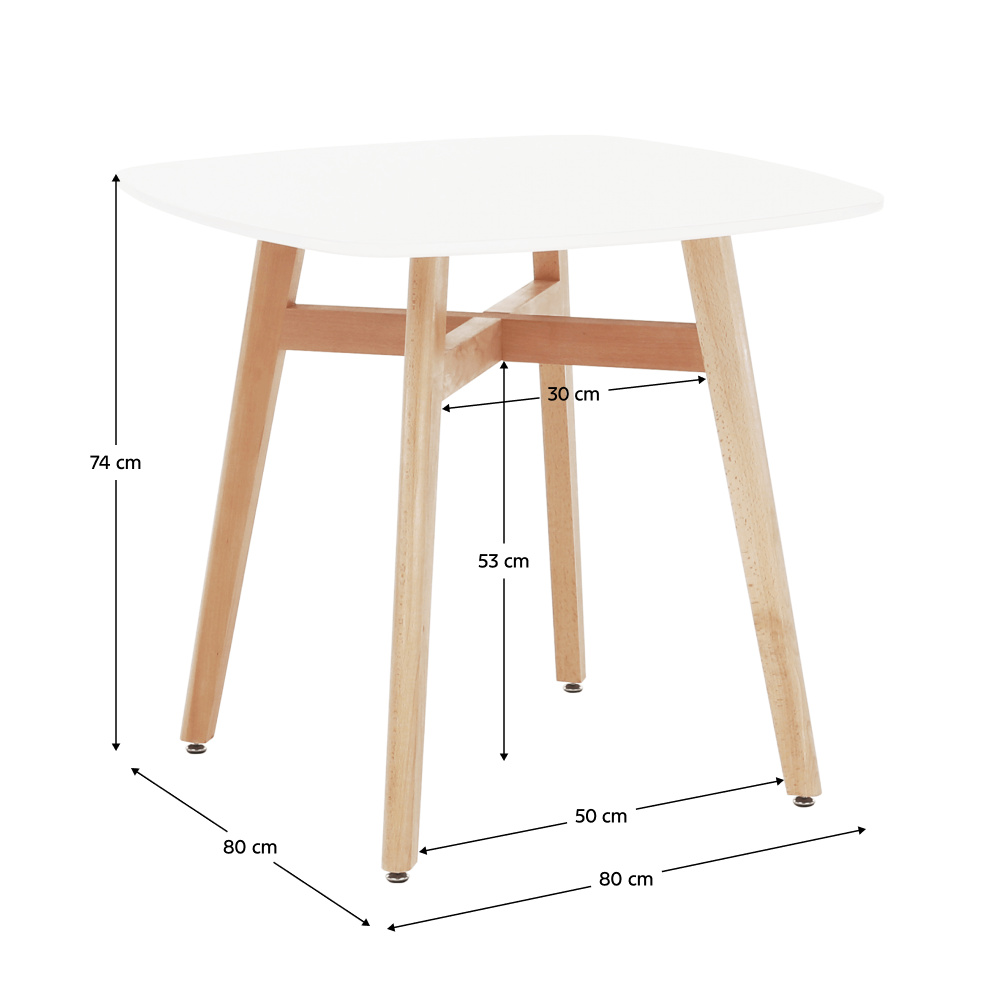 Jídelní stůl DEJAN NEW Materiál: MDF / masivní dřevo - nohy Barevné provedení: bílá / přírodní Rozměry ŠxHxV: 80x80x74 cm Dodávané v demontu
