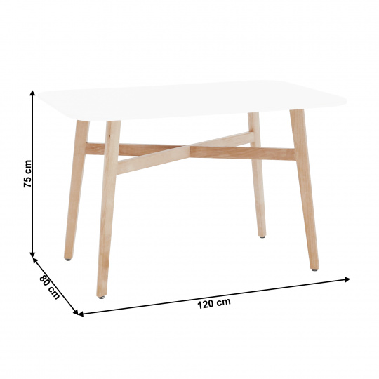 Materiál: MDF / masivní dřevo Barevné provedení: bílá / přírodní Rozměry (ŠxHxV): 120x80x75 cm Tloušťka materiálu: 18 mm Vhodné kombinovat se židlemi BALI 2 NEW, Damaris, lorita a Loden Dodávané v demontu.