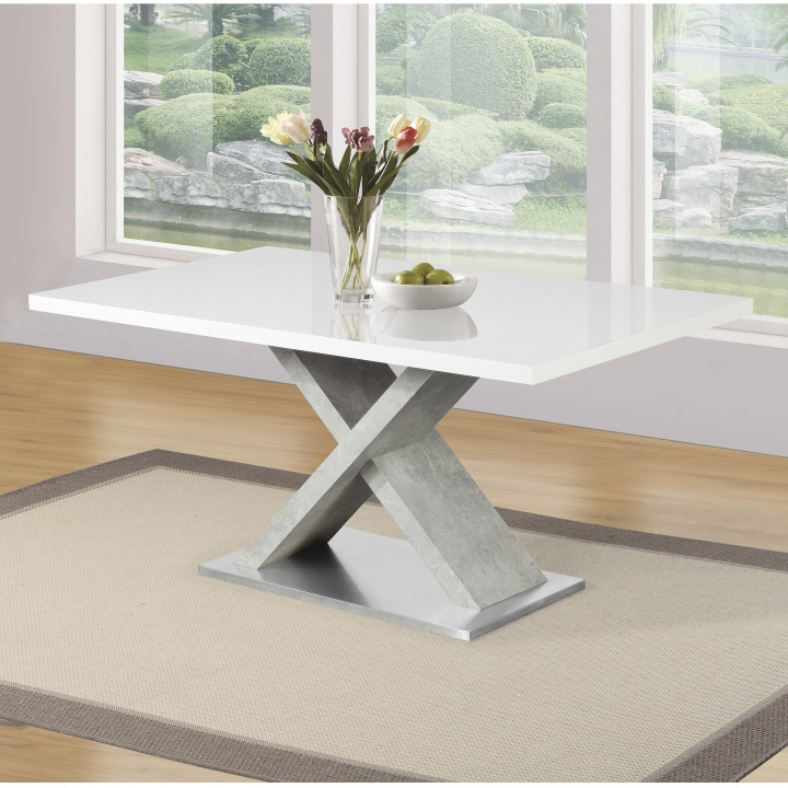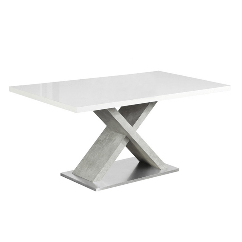 Jídelní stůl, bílá s vysokým leskem HG / beton, 160x90 cm, FARNEL