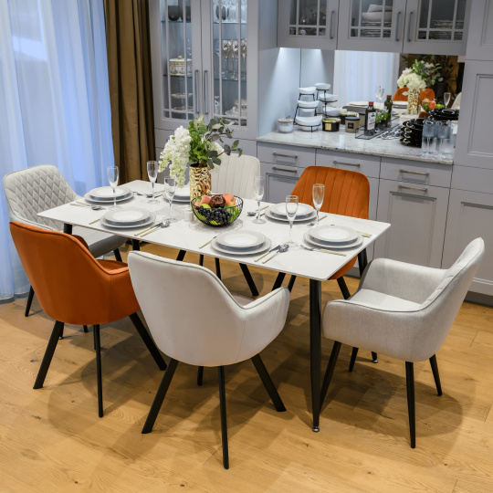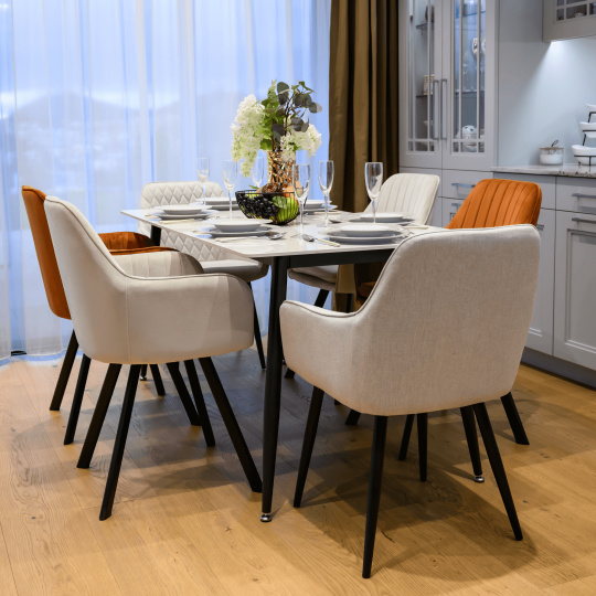 Materiál: kámen/ocel Barva: bílý mramor/černá Rozměry (ŠxHxV): 160x80x75 cm Tloušťka kamenného platu: 1,1 cm Nosnost: 60 kg Praktický Moderní design Vhodný pro 6-8 osob Dodáváno v demontu