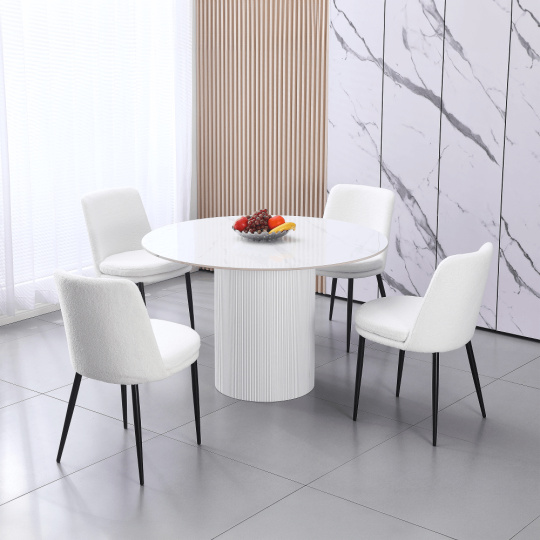 Jídelní stůl, bílý mramor/MDF, průměr 120 cm, MAHIR TYP 1