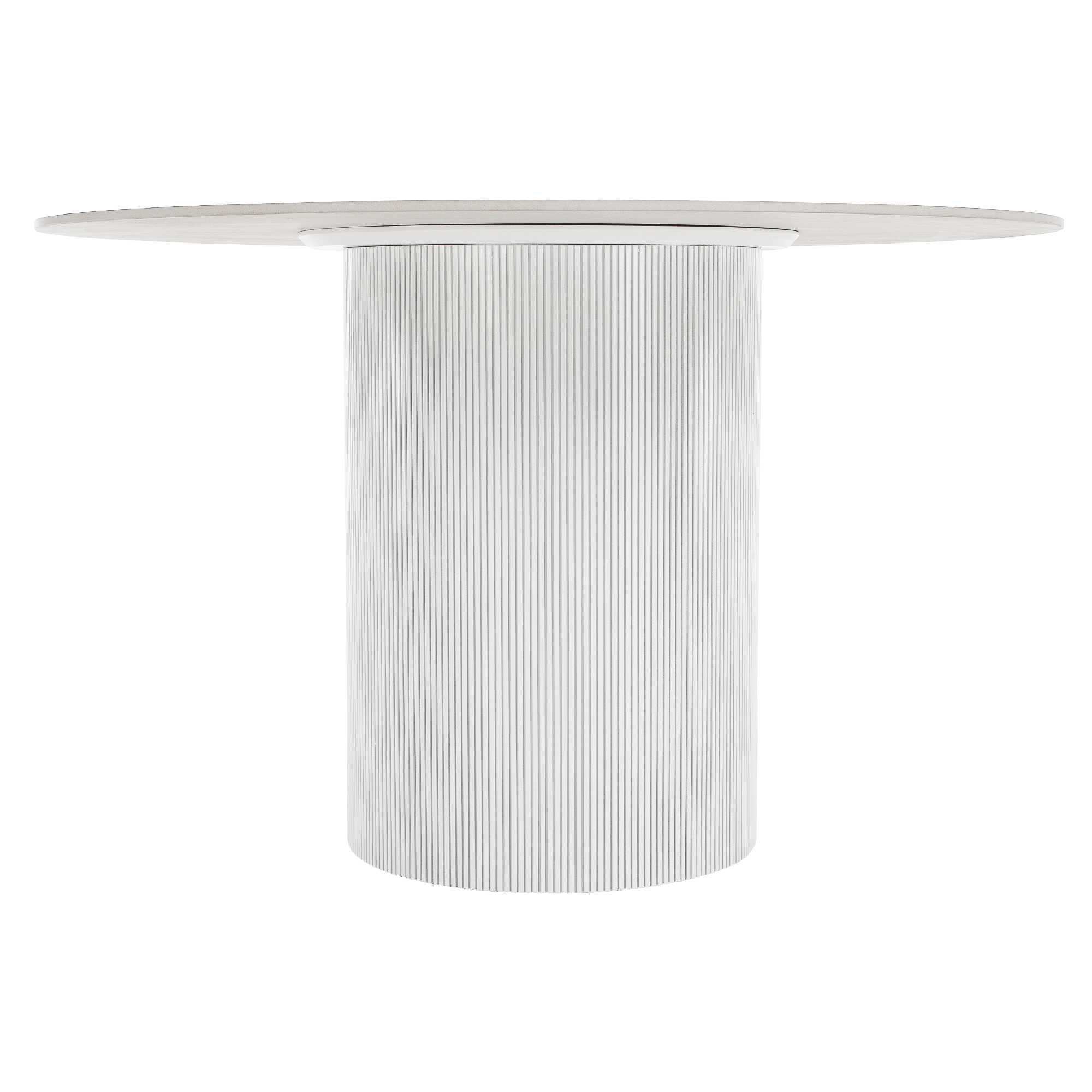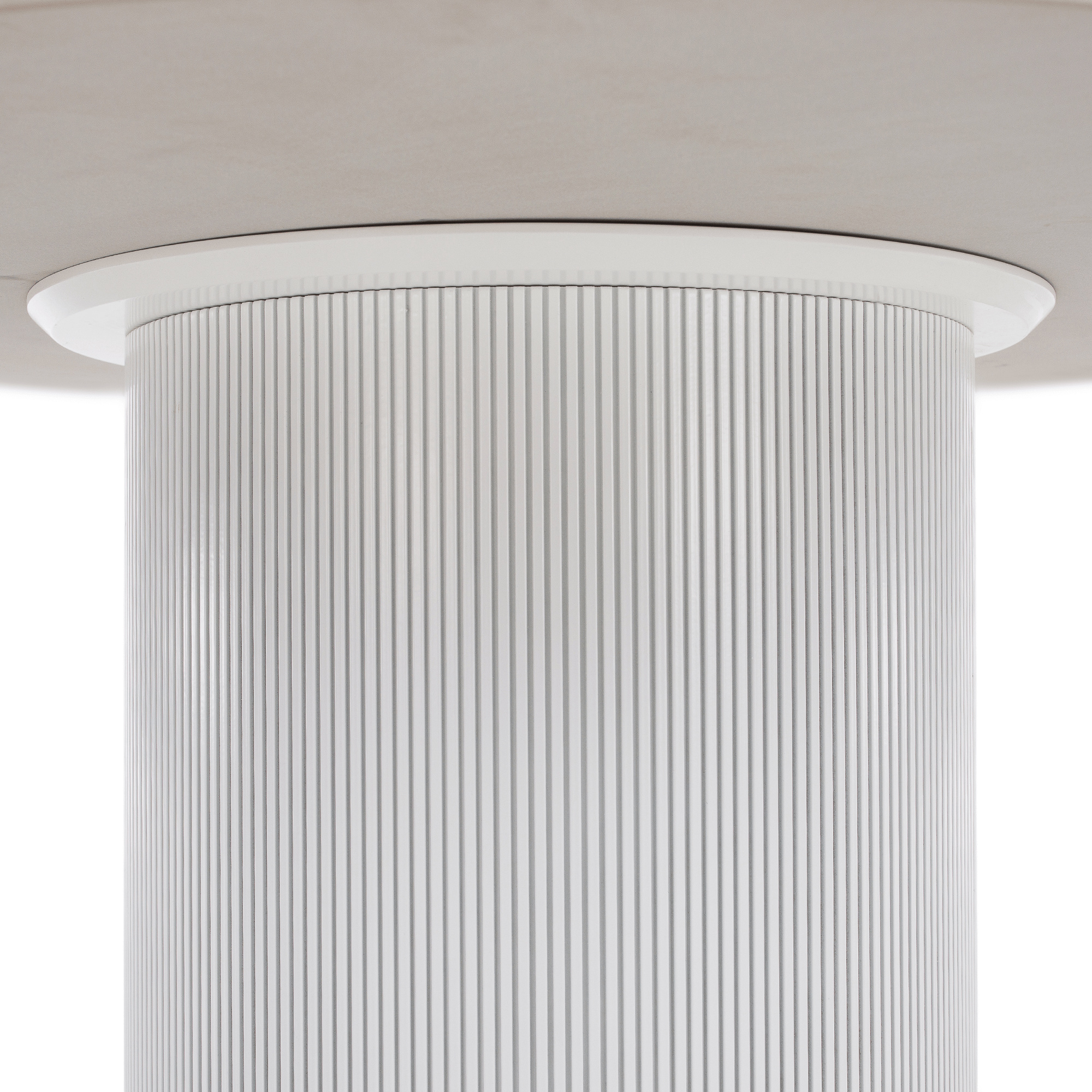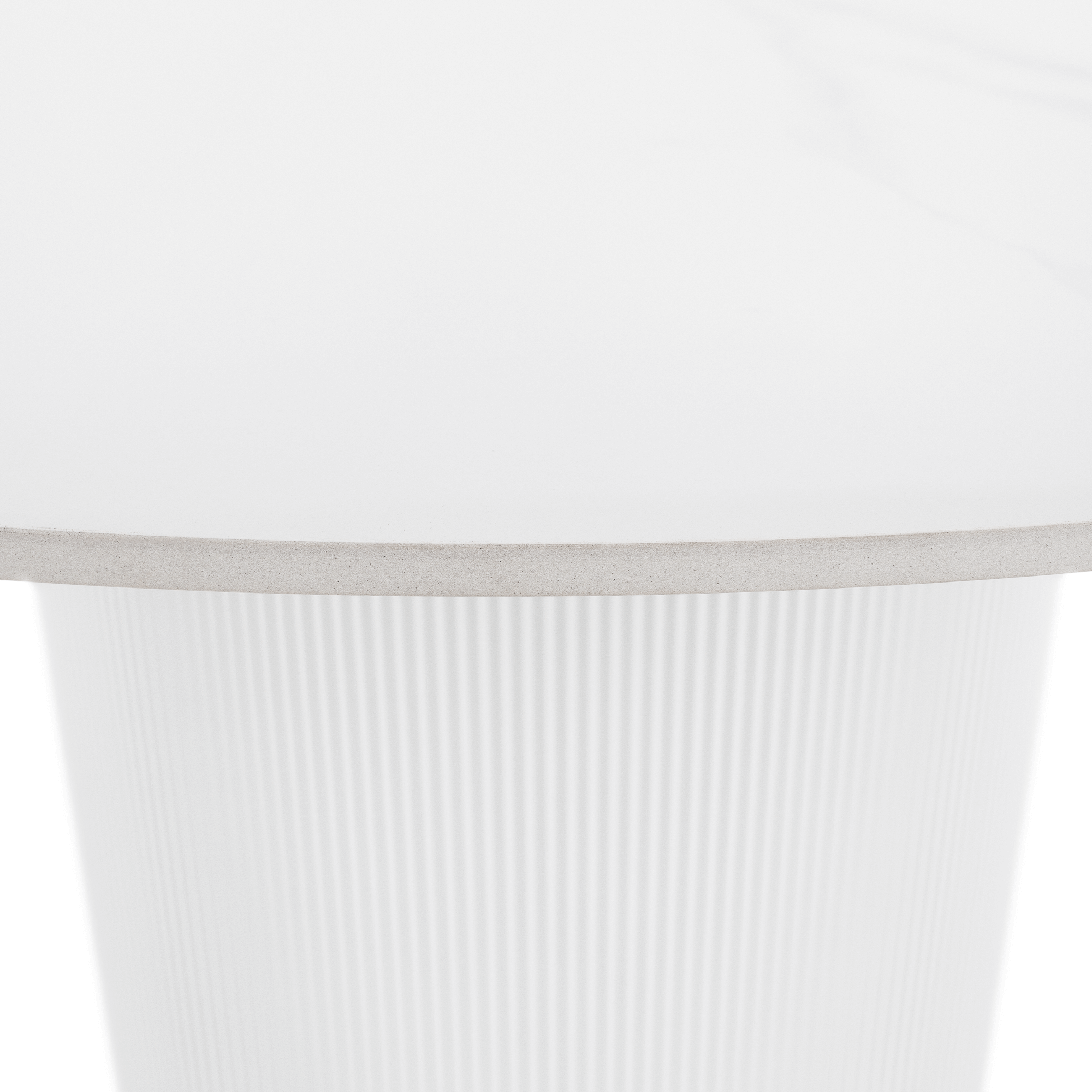 Materiál deska stolu: broušený kámen Barevné provedení: bílý mramor Konstrukce nohy: MDF Barevné provedení: bílá Rozměry stolku (PxV): 120x75 cm Tloušťka platu stolu: 1,1 cm Originální kousek Kulatý Moderní a stylový Nosnost: 50 kg Dodáváno v demontu