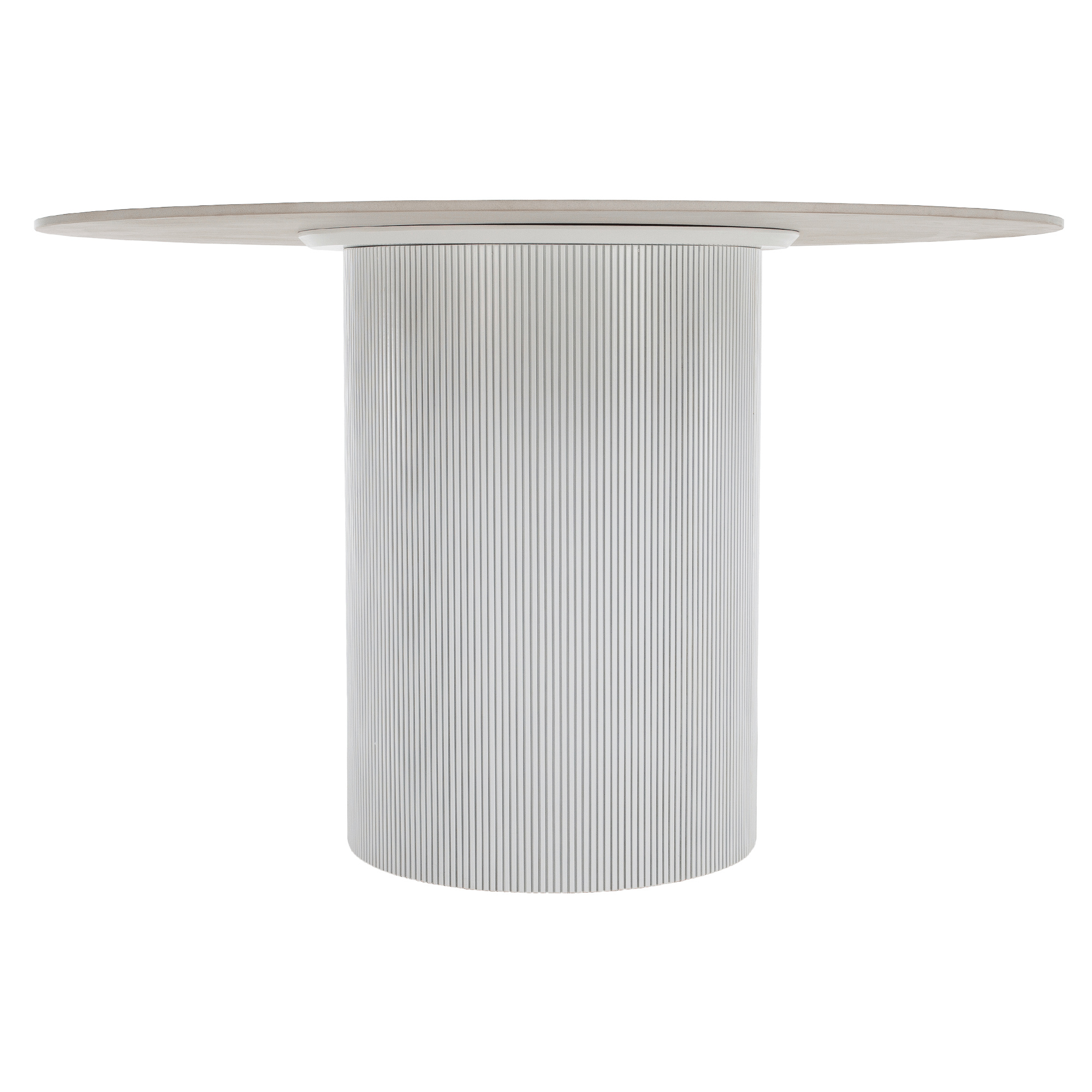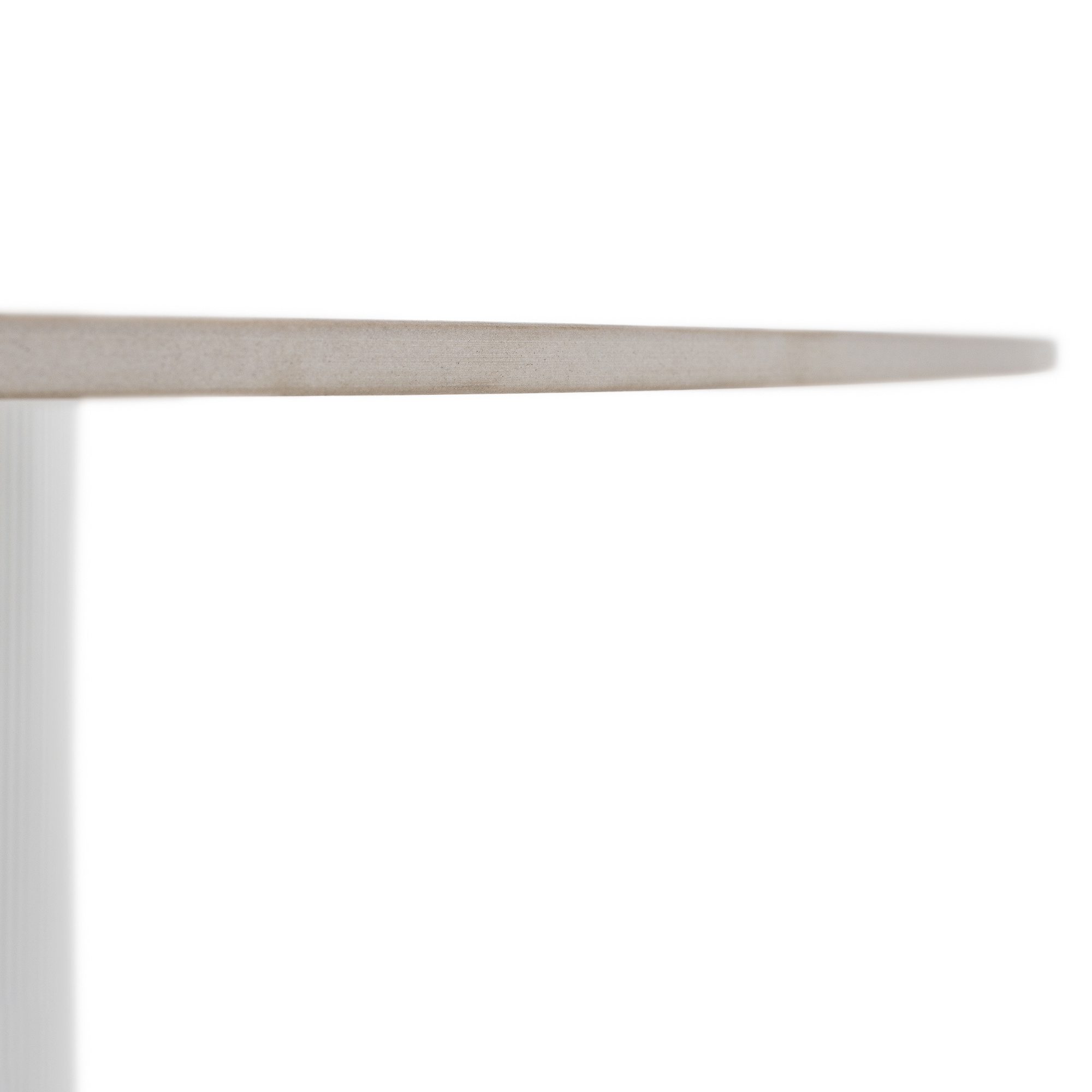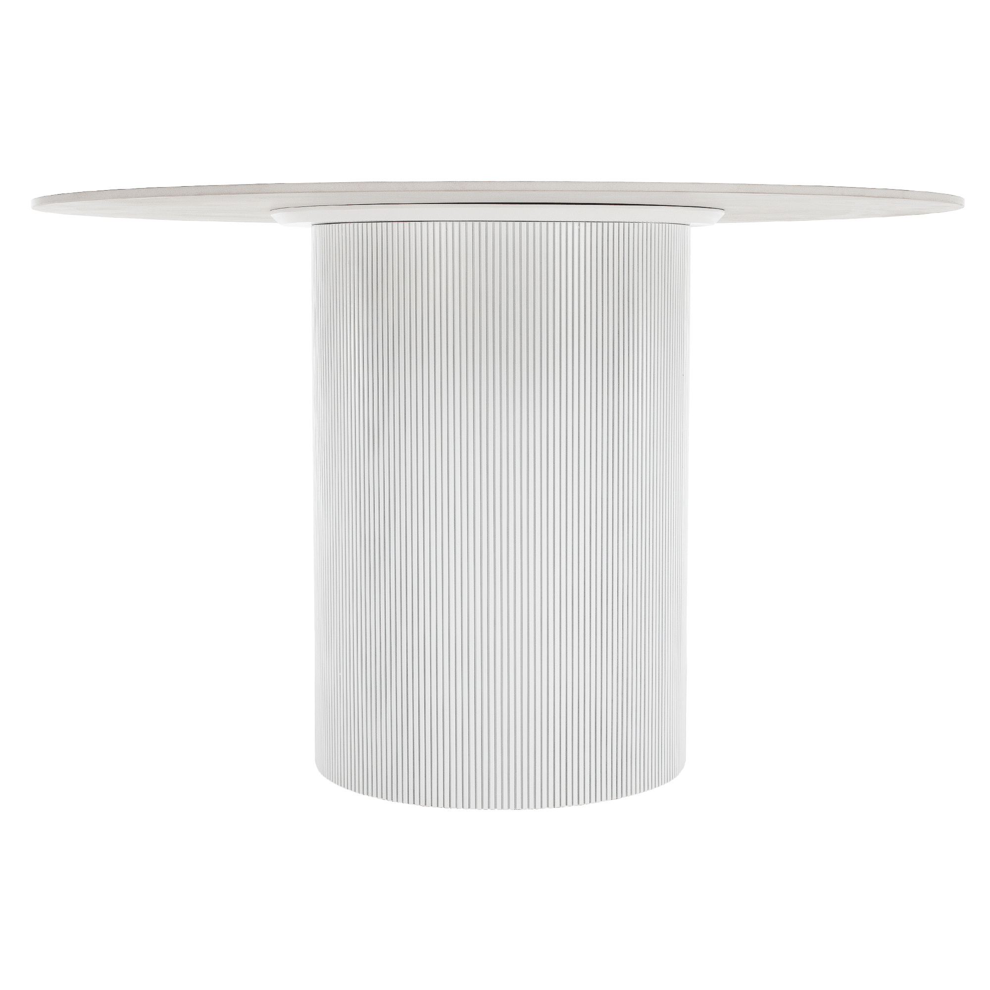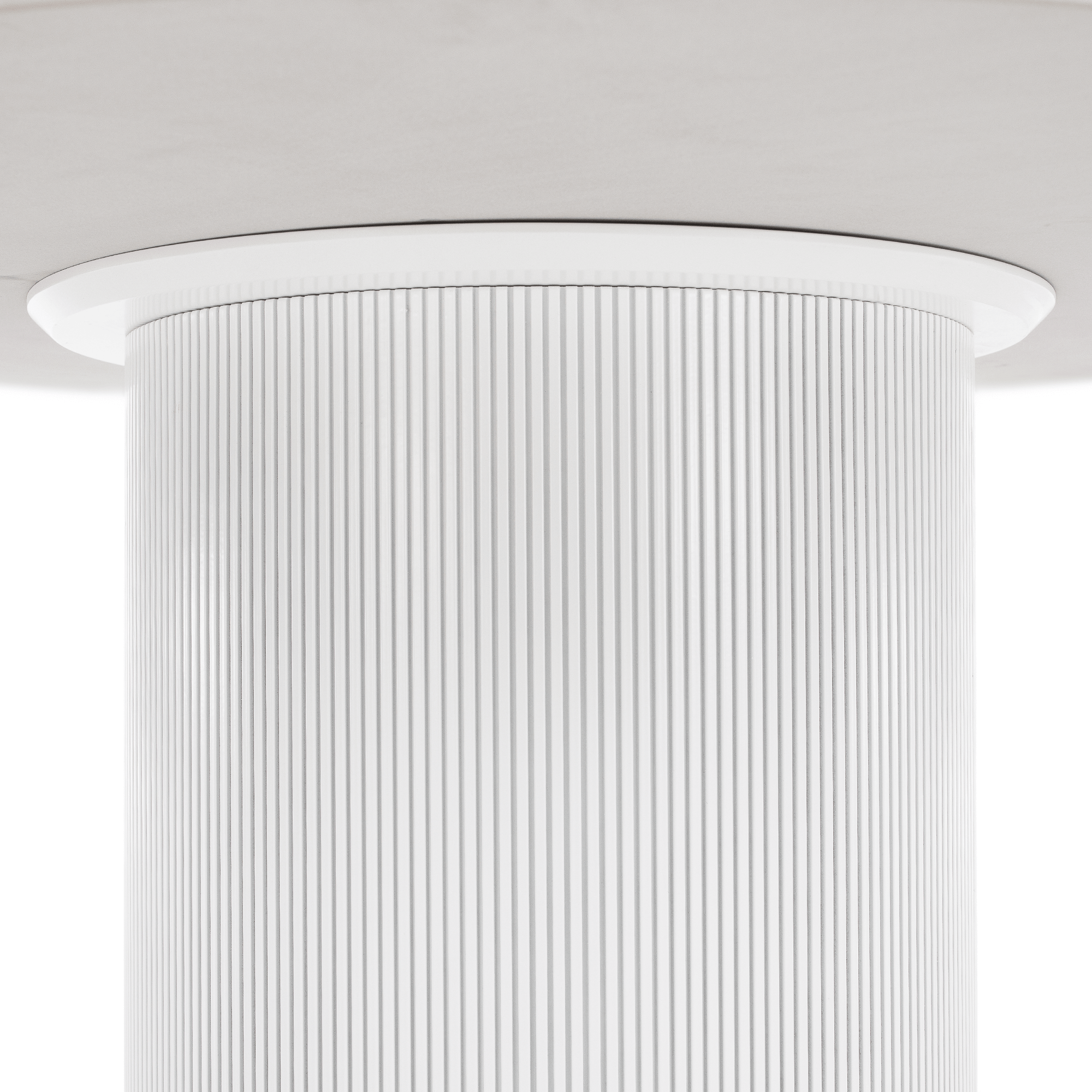 Materiál deska stolu: broušený kámen Barevné provedení: bílý mramor Konstrukce nohy: MDF Barevné provedení: bílá Rozměry stolku (PxV): 120x75 cm Tloušťka platu stolu: 1,1 cm Originální kousek Kulatý Moderní a stylový Nosnost: 50 kg Dodáváno v demontu