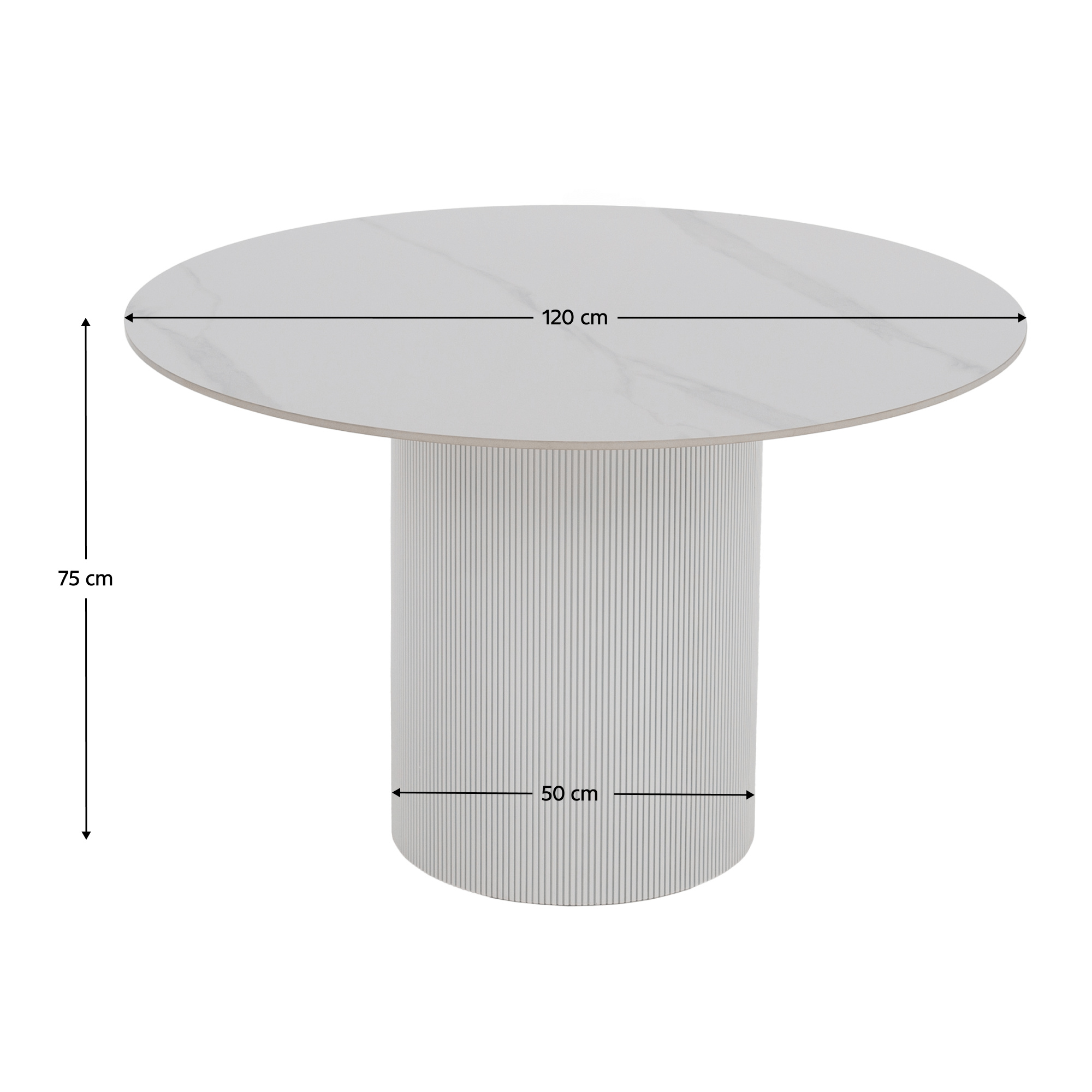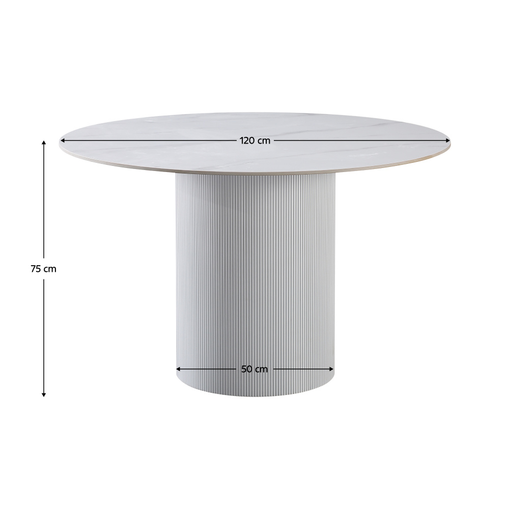 Jídelní stůl, bílý mramor/MDF, průměr 120 cm, MAHIR TYP 1