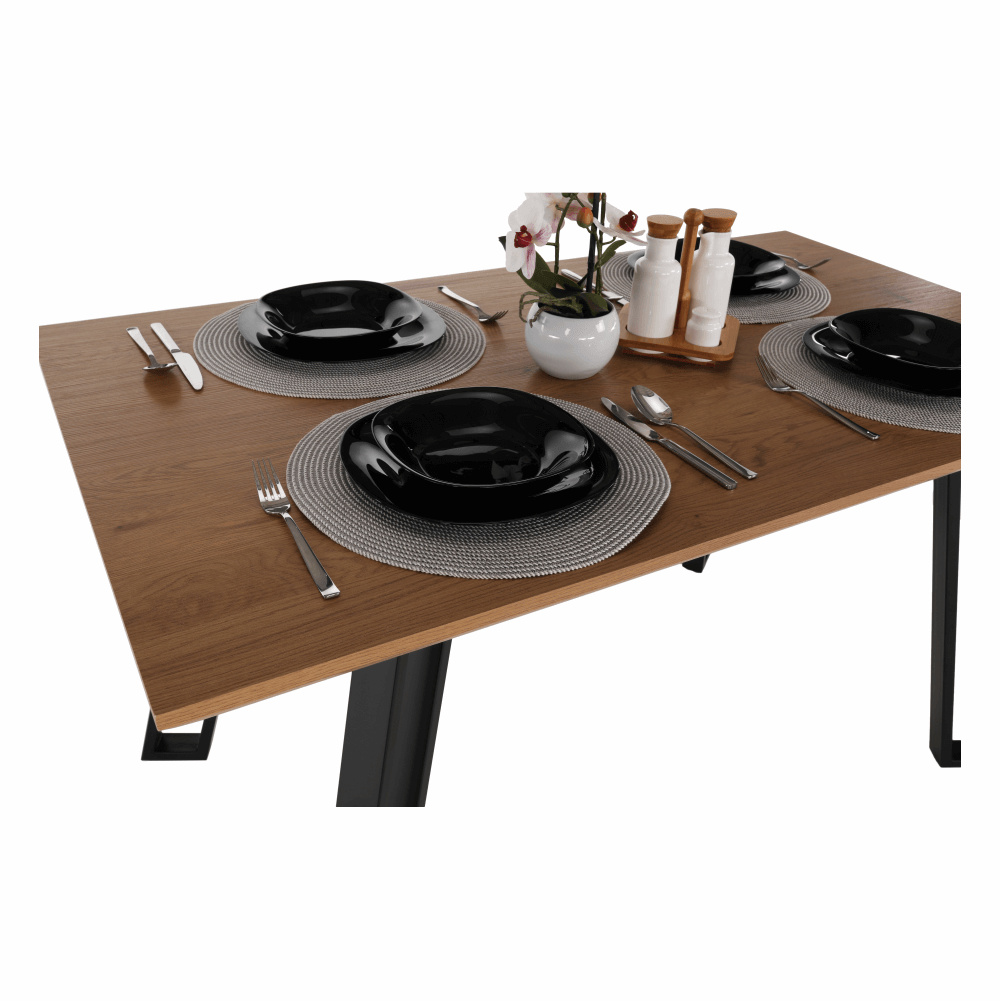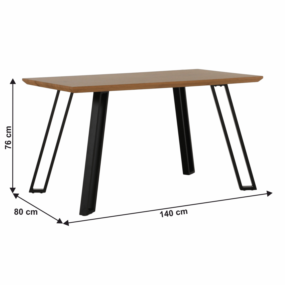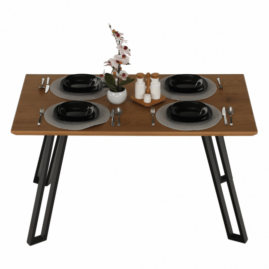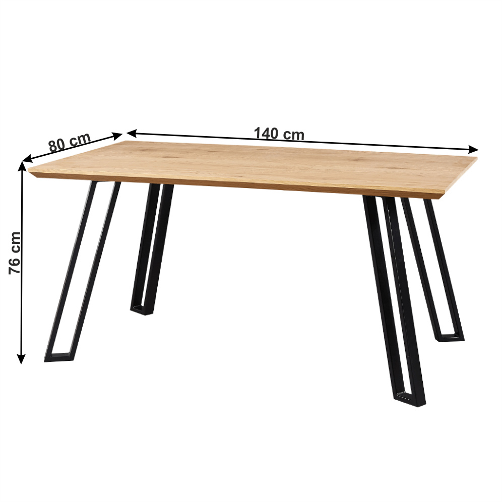 Materiál: MDF / kov Provedení: dub / černá Rozměry (ŠxHxV): 140x83x78 cm Pro 4-6 osob Dodávané v demontu.
