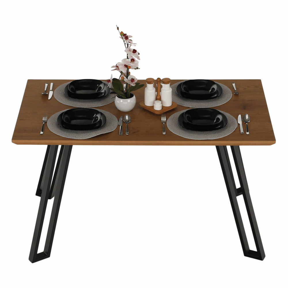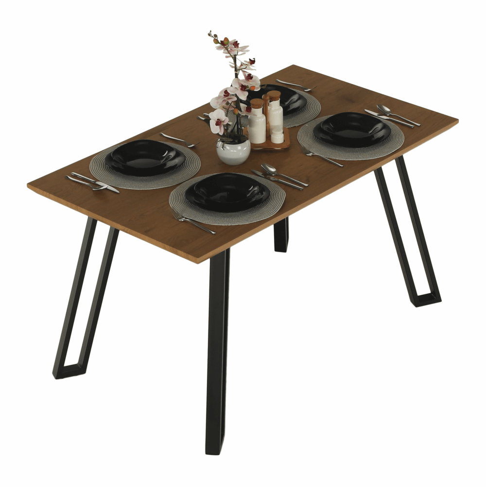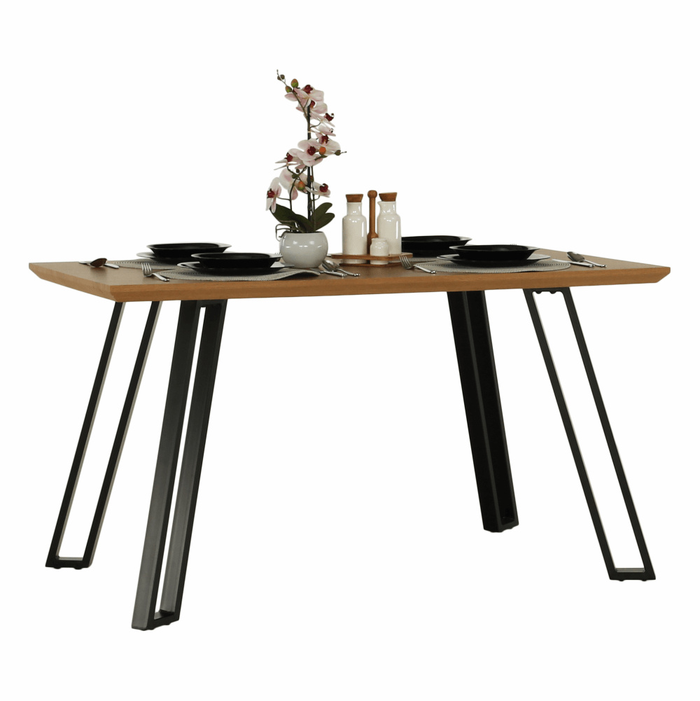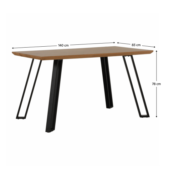 Materiál: MDF / kov Provedení: dub / černá Rozměry (ŠxHxV): 140x83x78 cm Pro 4-6 osob Dodávané v demontu.