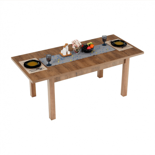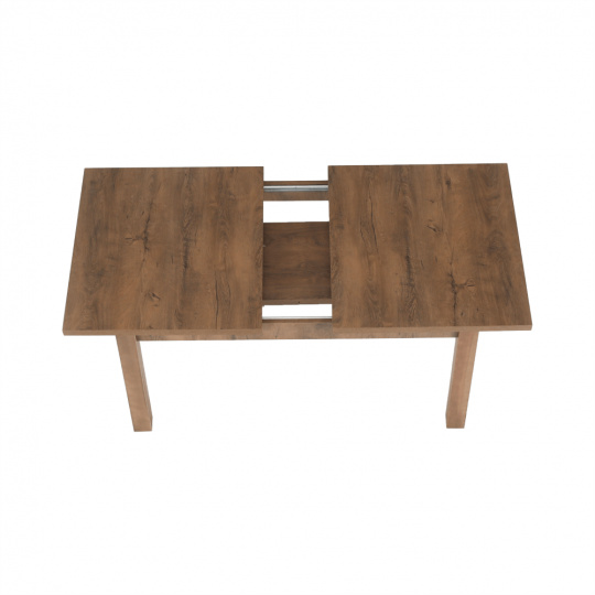 Jídelní stůl 16, rozkládací, MONTANA STW Materiál: DTD laminovaná Barevné provedení: dub lefkas tmavý Rozměry (ŠxHxV): 160-203x90x82 cm Tloušťka materiálu: 36 mm Dodávané v demontu.