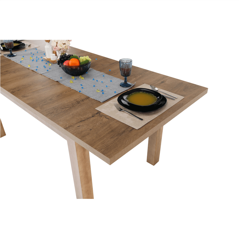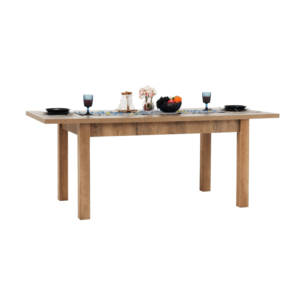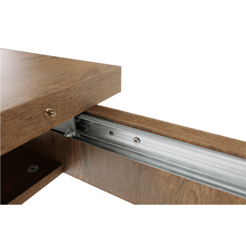 Jídelní stůl 16, rozkládací, MONTANA STW Materiál: DTD laminovaná Barevné provedení: dub lefkas tmavý Rozměry (ŠxHxV): 160-203x90x82 cm Tloušťka materiálu: 36 mm Dodávané v demontu.