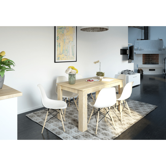 jídelní stůl, materiál: DTD laminovaná (plát stolu), provedení: dub sonoma, rozměry (ŠxHxV): 140x80x75 cm, vhodný pro 6 osob. Tloušťka materiálu: 18 mm. Kvalitní slovenský výrobek Dodáván v demontu.